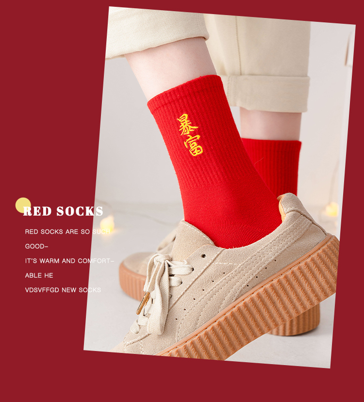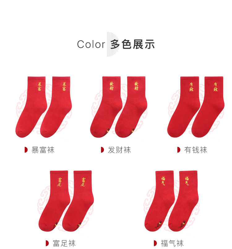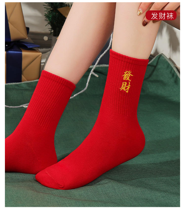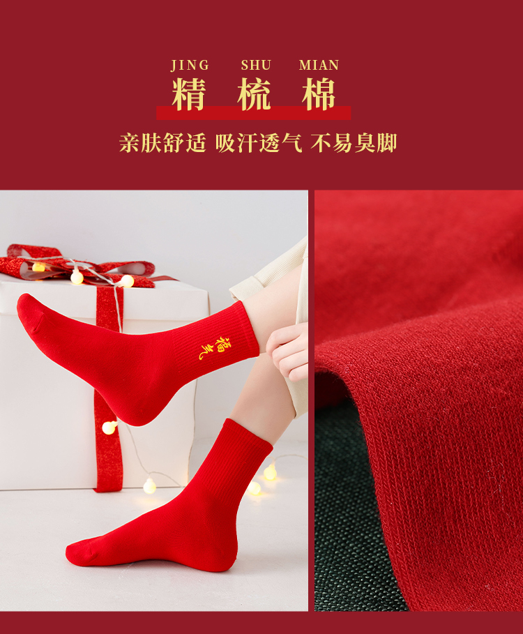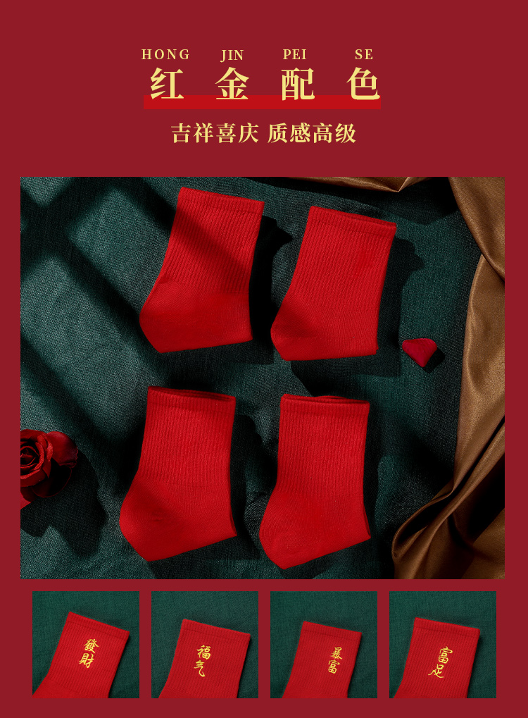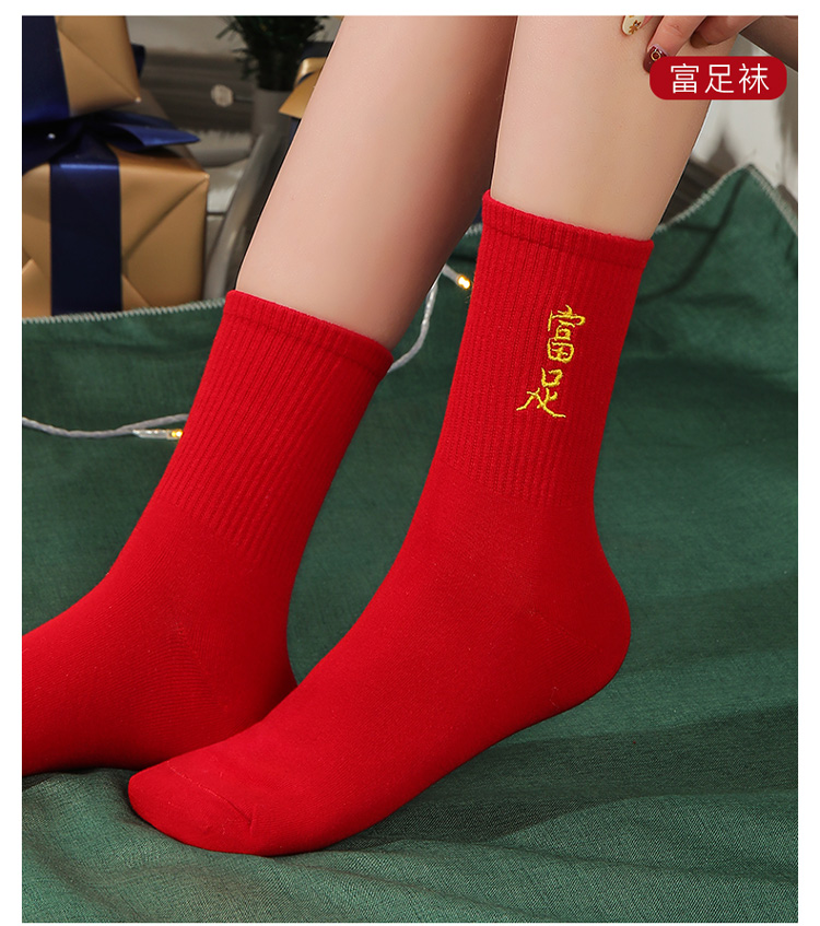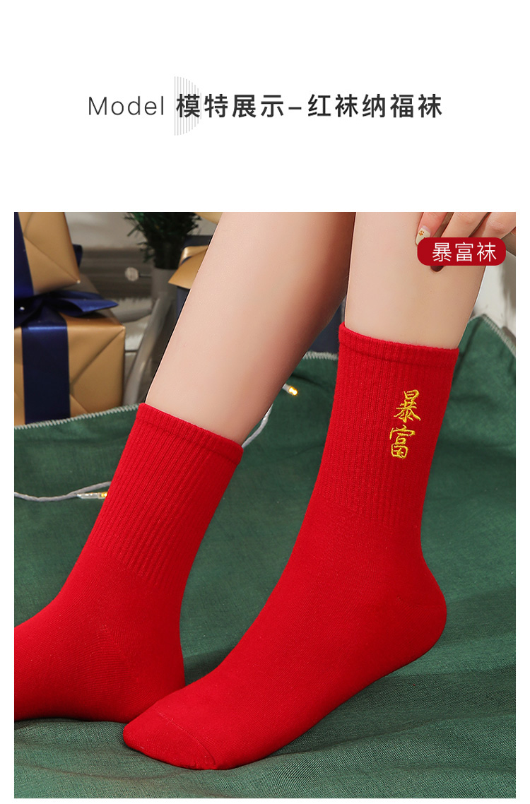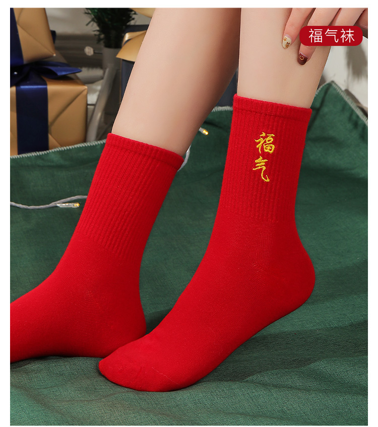 【鸿运袜】单双装秋冬保暖棉袜婚嫁喜庆本命红袜子中筒棉袜女袜子招财纳福袜