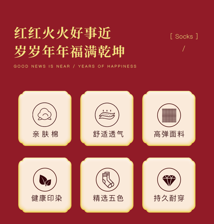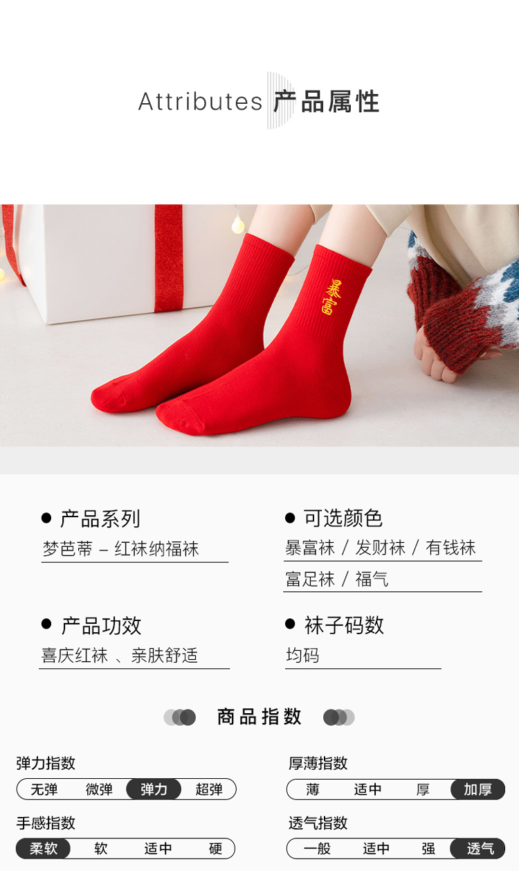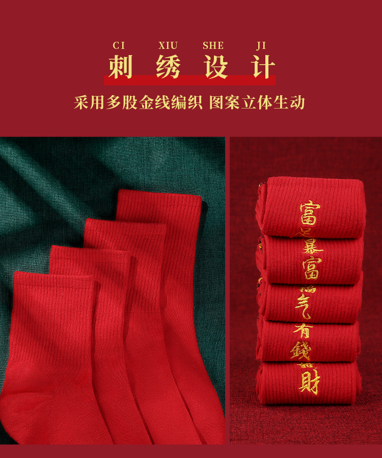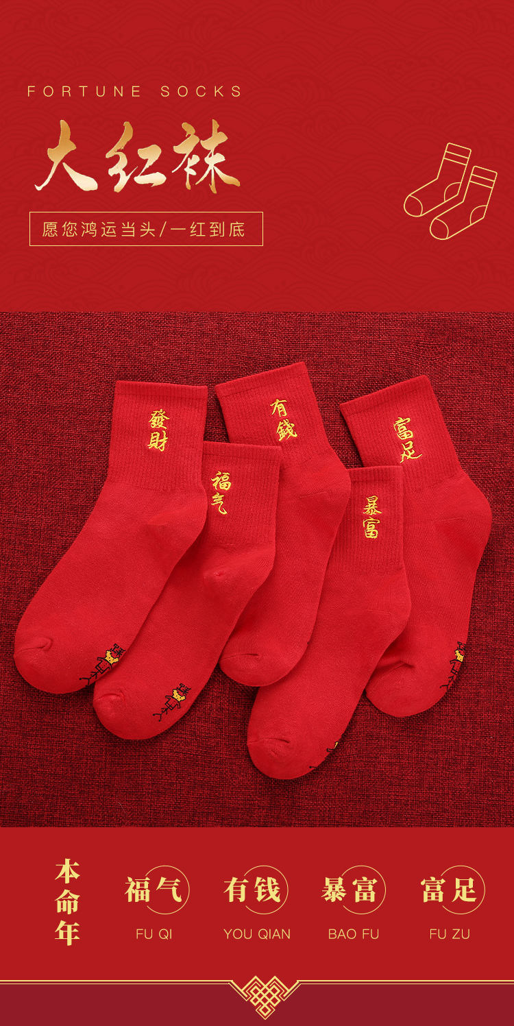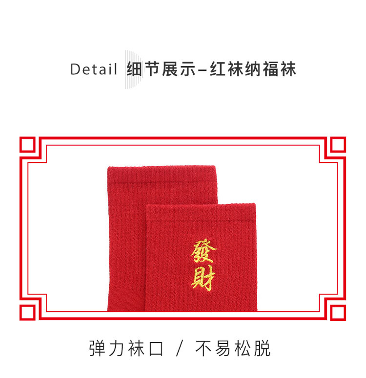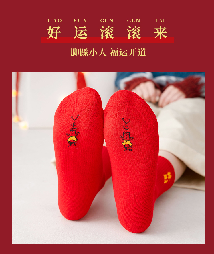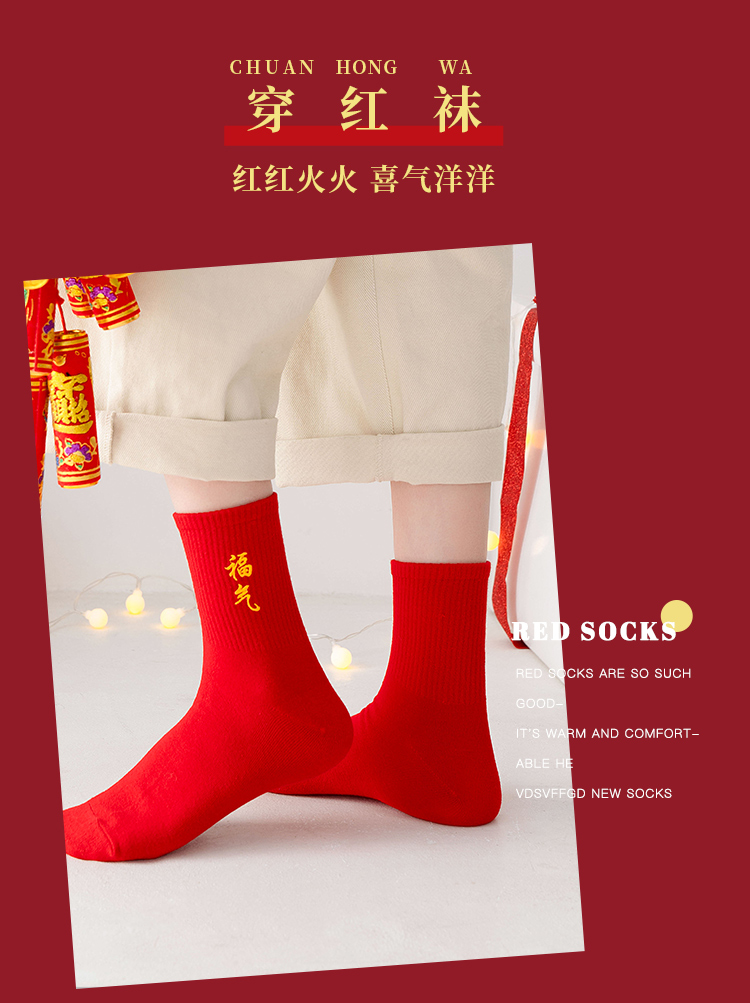【鸿运袜】单双装秋冬保暖棉袜婚嫁喜庆本命红袜子中筒棉袜女袜子招财纳福袜