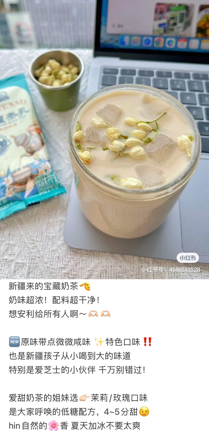 虽然我对奶茶真的一般般,不馋这一口,不过新疆的茶乳,倒也蛮值得一吃,便宜哎,还能自己DIY下,切点红枣,放点枸杞、坚果,非常异域风情!还有三个口味,咸香、馥郁玫瑰香、清新茉莉香,可以换着口味喝,比奶茶店就真的香多了!