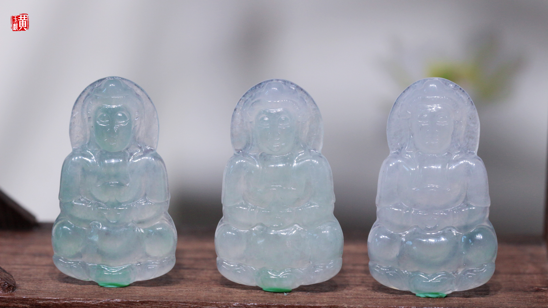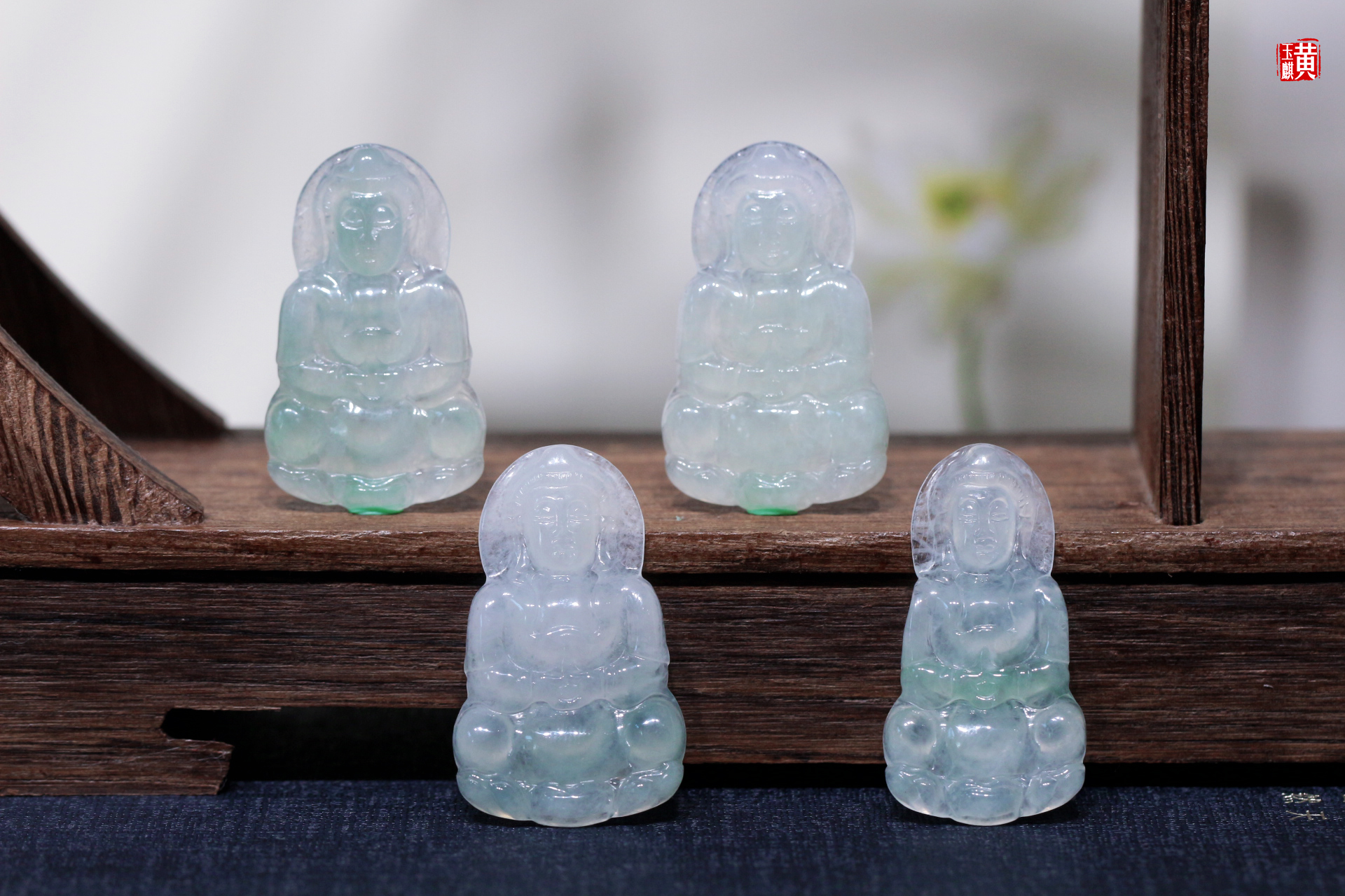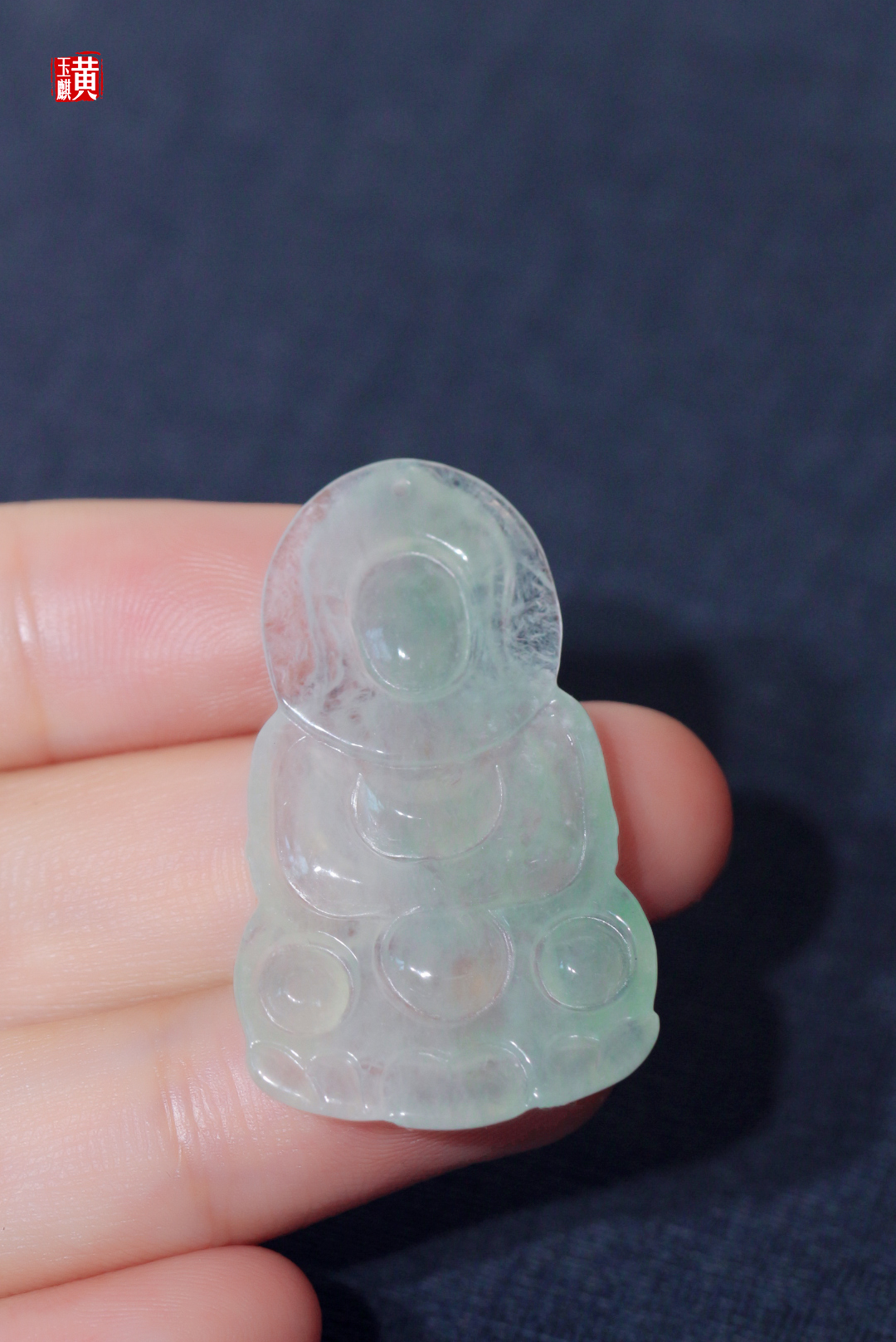 天然翡翠精雕玉观音,质感冰透,水头润长,或晴水色,或飘绿色,冰清玉洁(实物更漂亮)。