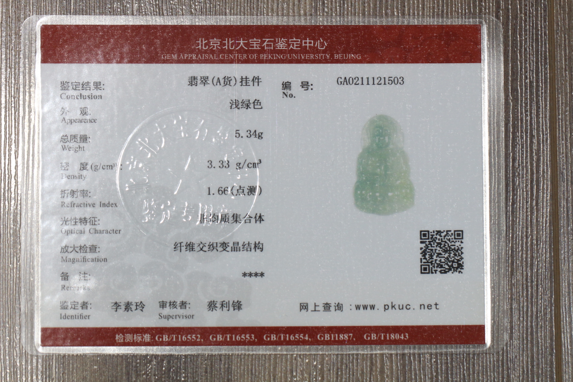 天然翡翠【观音】 配精美挂绳