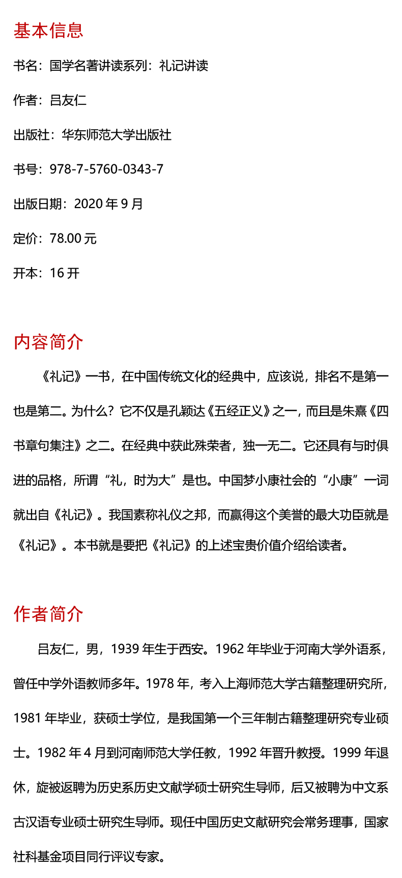 礼记讲读 国学名著讲读系列 吕友仁著 正版 华东师范大学出版社