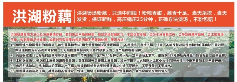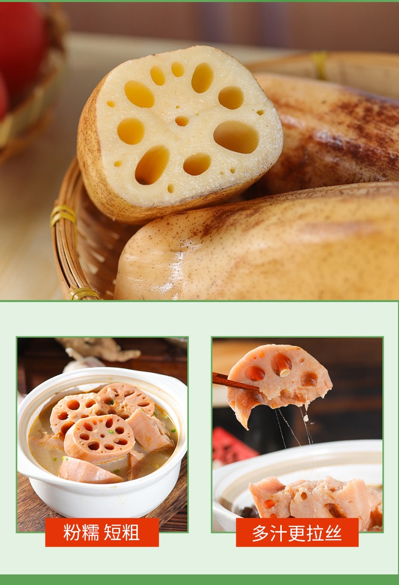 品名: 洪湖莲藕规格1:3斤体验装,发京东/顺丰 规格2:5斤家庭装,发京东/顺丰 规格3:5斤精品装,发京东/顺丰 注:5斤/箱(4到7根),3斤/箱(2到4根); 正确方法炖藕,不粉包赔!(9月至11月因淀粉物质未到最高,必须需要高压锅炖20-25分钟分钟,介意慎拍!且洪湖粉藕禁止使用铁锅、铝锅炖,11月后不挑锅随便炖20分钟以上都可以非常粉) 包装方式:纸箱/彩箱 快递:顺丰/京东随机 运费模板:港澳台、新疆、西藏不发货,青海、吉林、黑龙江、内蒙+30元;其他区域包邮 发货时效:2-3天 发货地/产地:湖北荆州洪湖 保质期:粉藕是带泥发货,泥是保鲜用的~收到后带泥放冰箱冷藏7到10天 销售售卖期:9月-次年4月 周六周天、节假日除外,早上十点之前的订单是48小时发货 ,到货时间约为2-5天,请您耐心等待 |