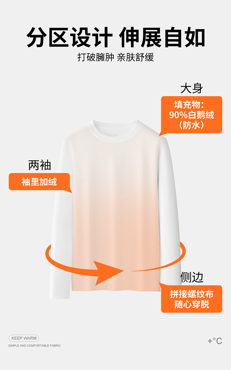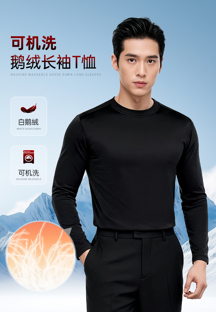 【可机洗鹅绒保暖长袖T恤】加绒打底卫衣T恤休闲通勤套头衫TT512