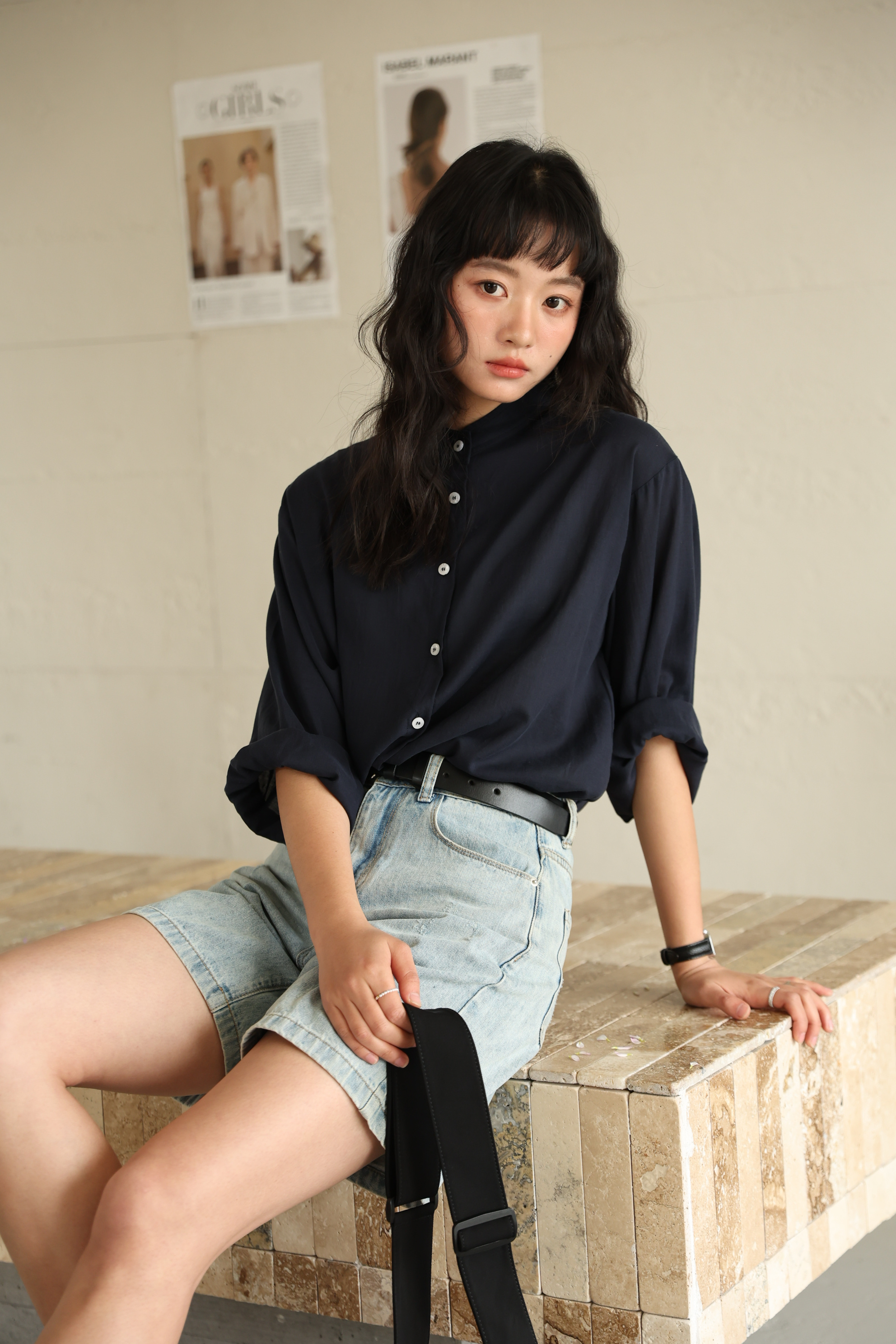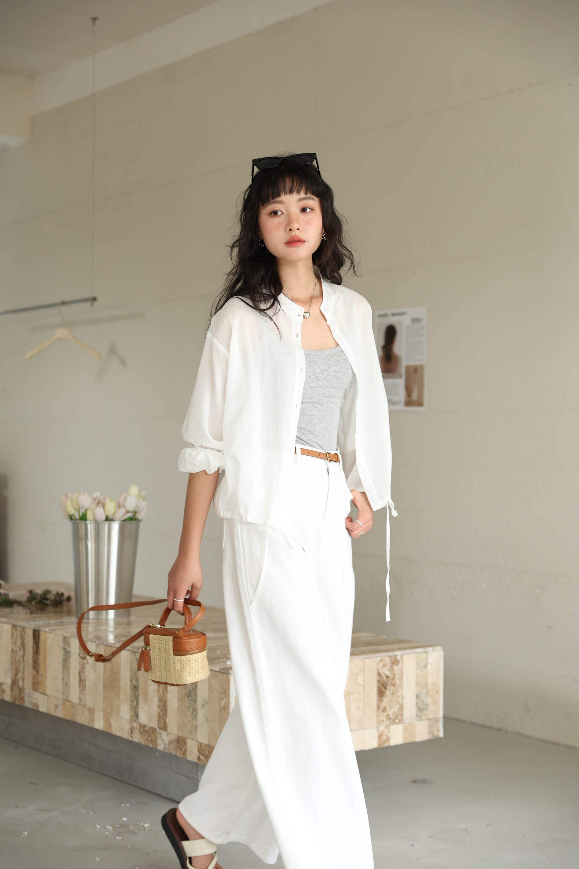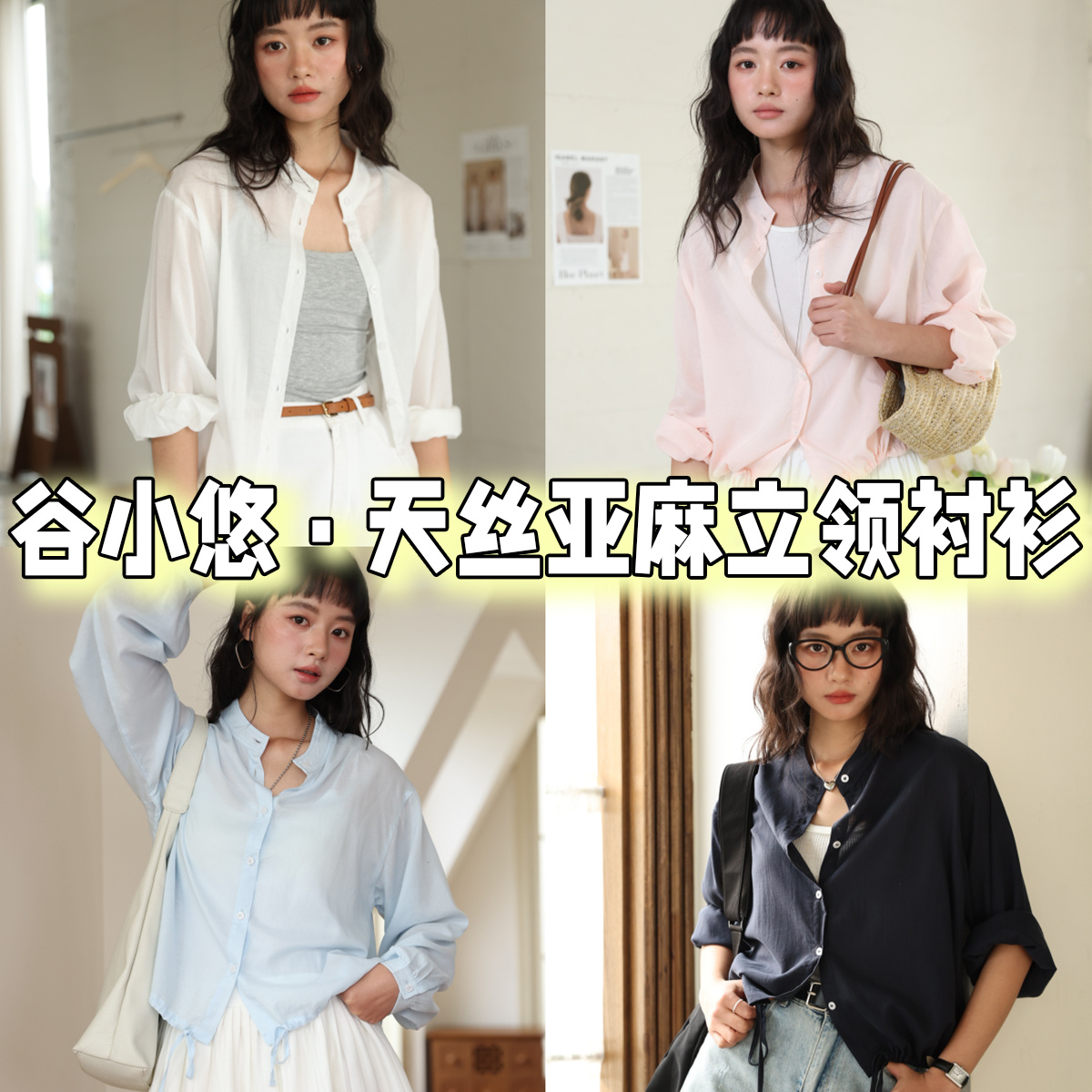 【谷小悠·天丝亚麻立领衬衫】韩国小众设计师款,小心机设计不会撞衫 天丝十亚麻质感,飘逸轻盈,舒适藏肉,久穿不 易变形 下摆的系带设计,上身很显慵懒文艺感哦
