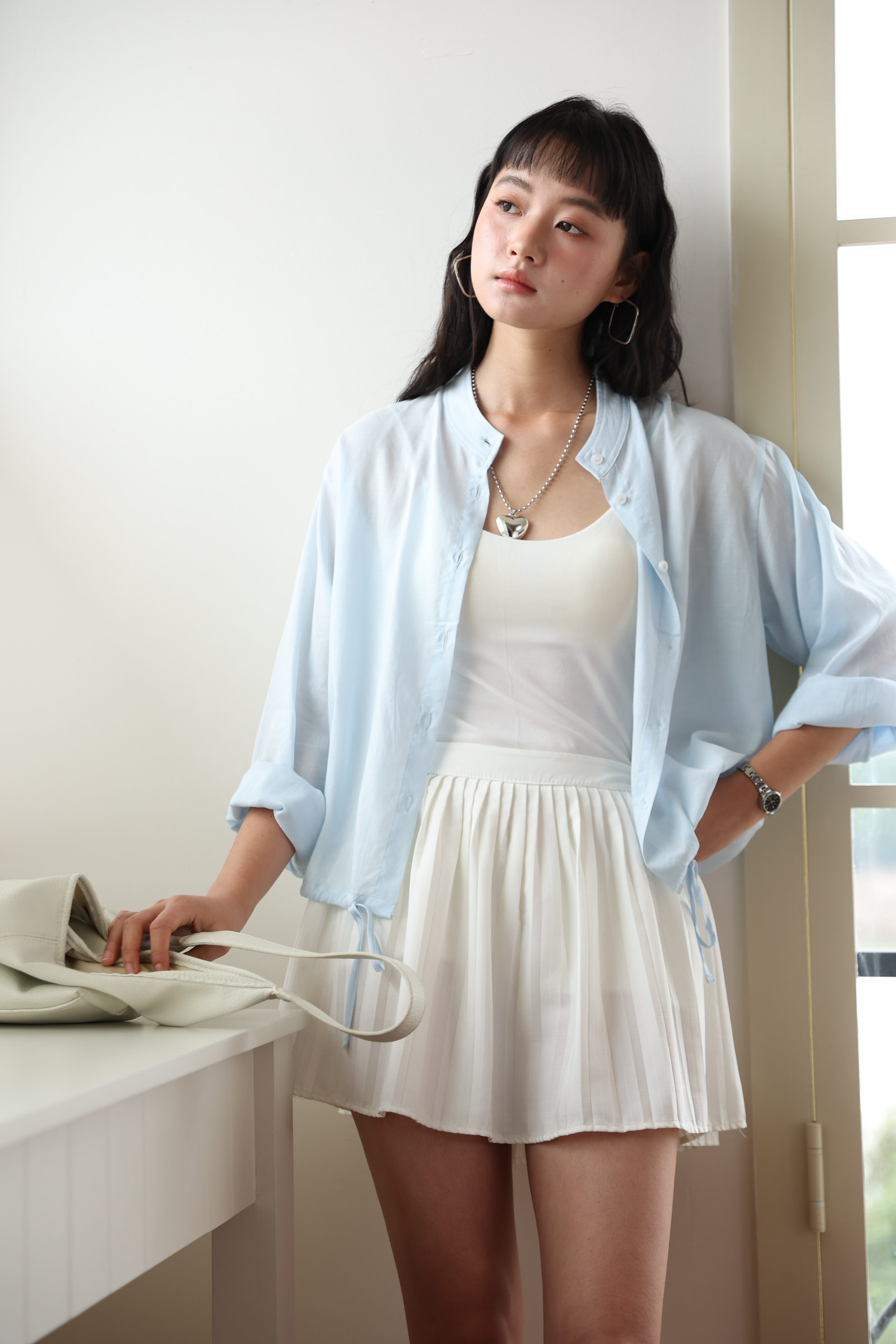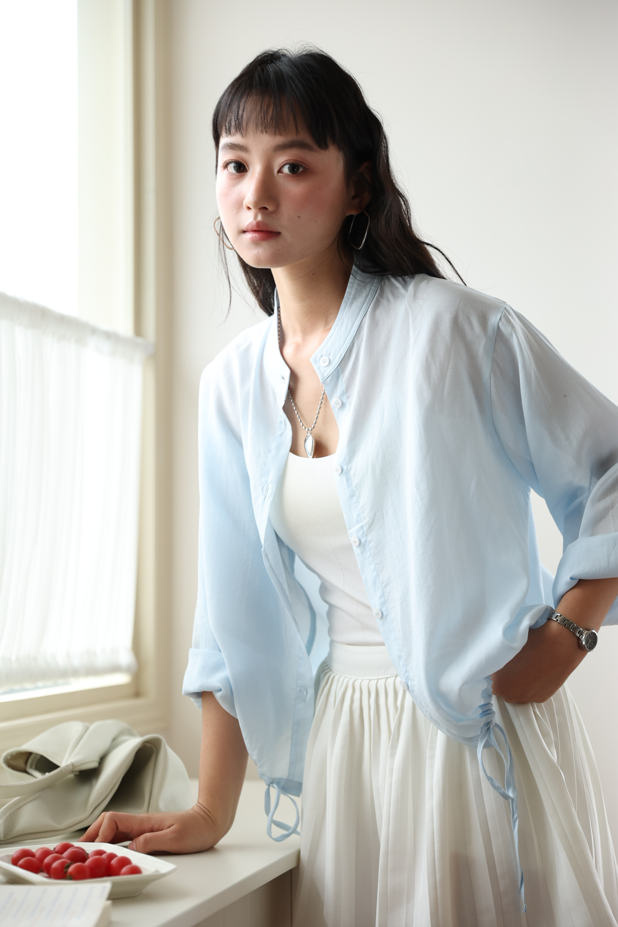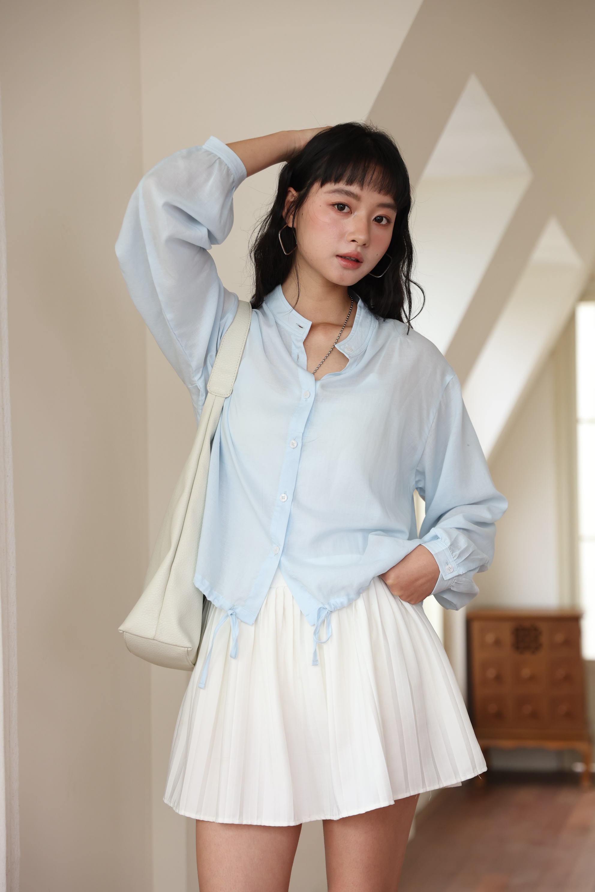 【谷小悠·天丝亚麻立领衬衫】韩国小众设计师款,小心机设计不会撞衫 天丝十亚麻质感,飘逸轻盈,舒适藏肉,久穿不 易变形 下摆的系带设计,上身很显慵懒文艺感哦