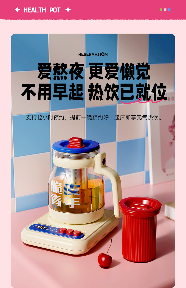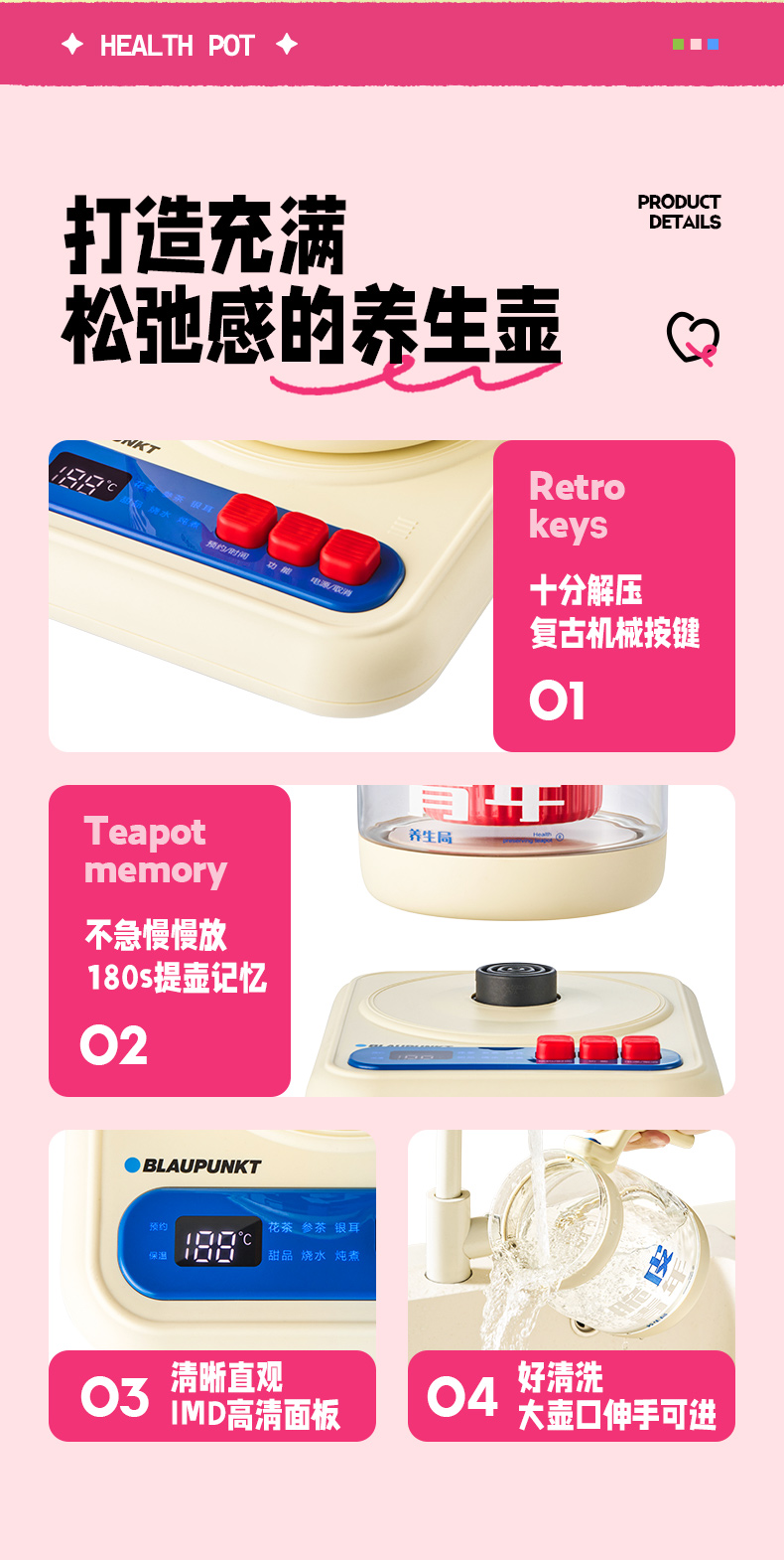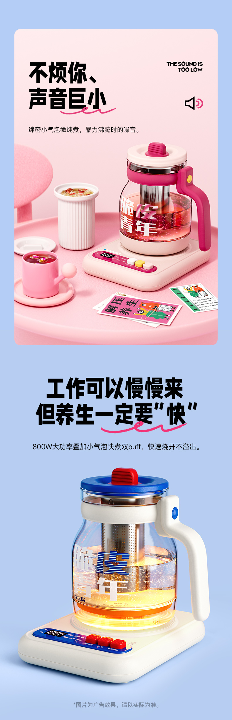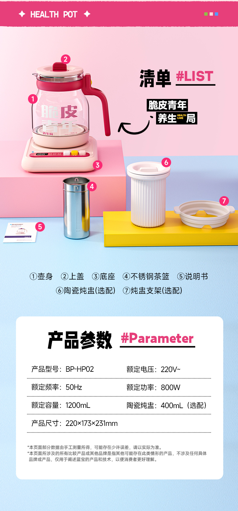 【文怡之选】蓝宝 ok泡养生壶BP-HP02 多功能炖煮 家用玻璃花茶壶 造型萌趣 1200ml容量