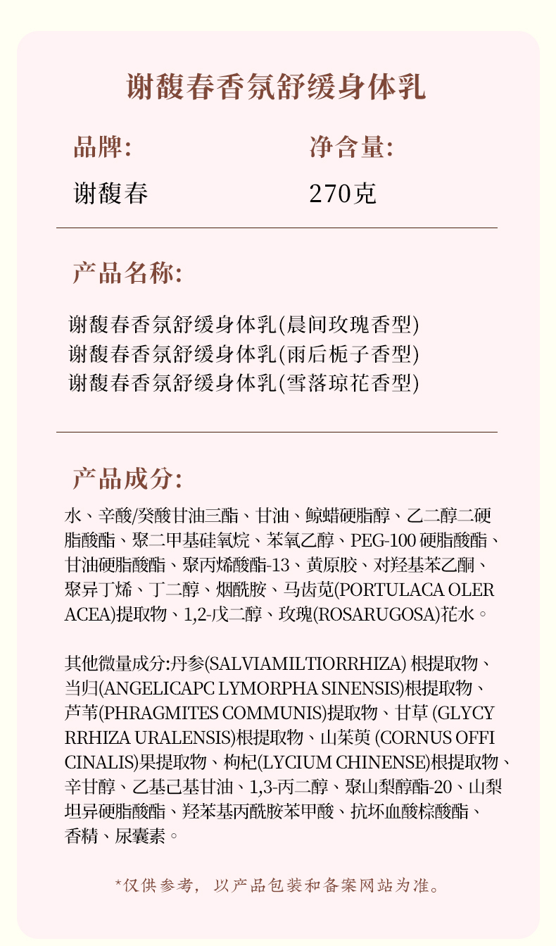 【上新】谢馥春香氛舒缓身体乳 保湿、舒缓、芳香