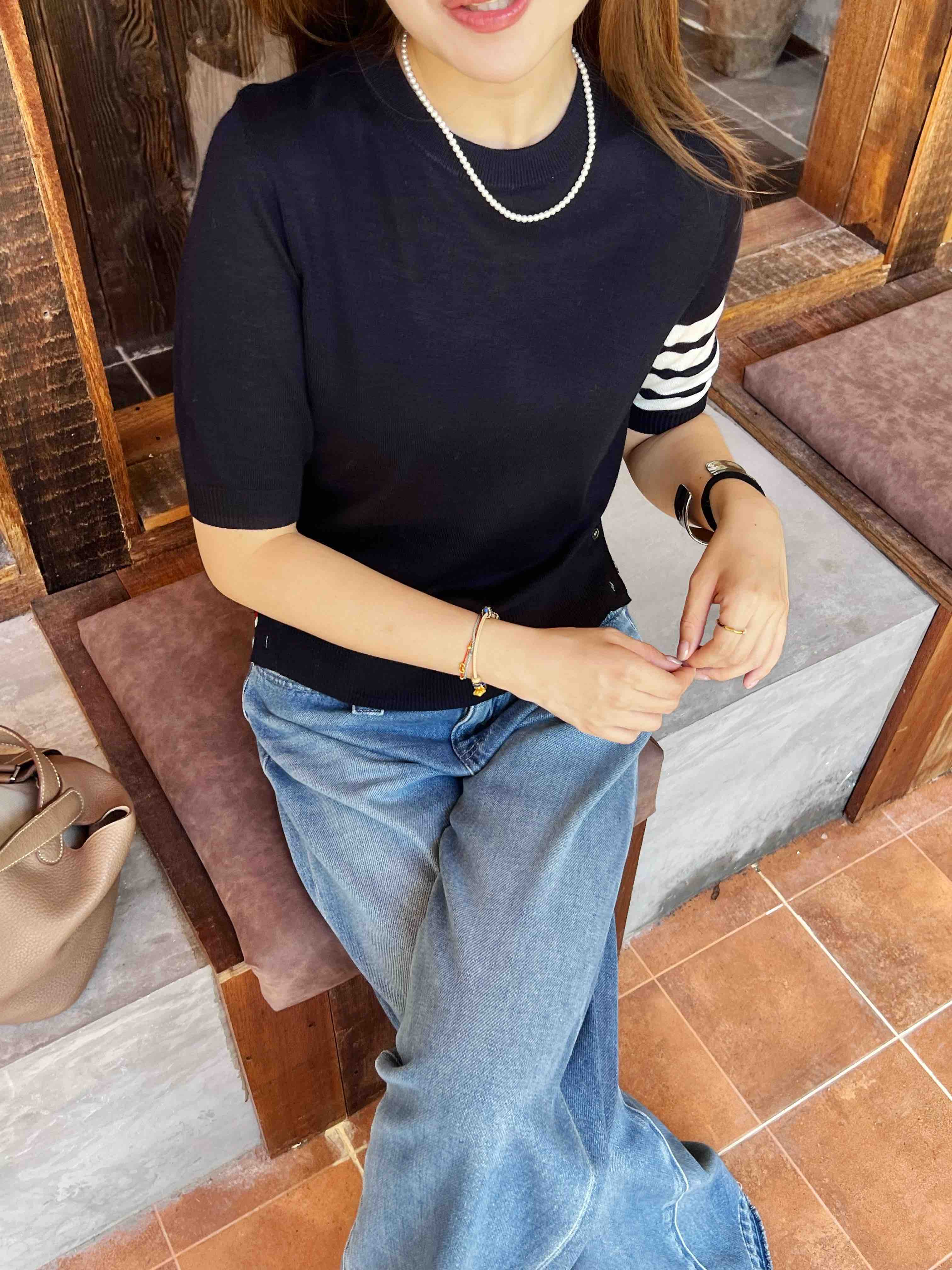 2603115 “松弛女王”条纹上衣 真丝羊绒