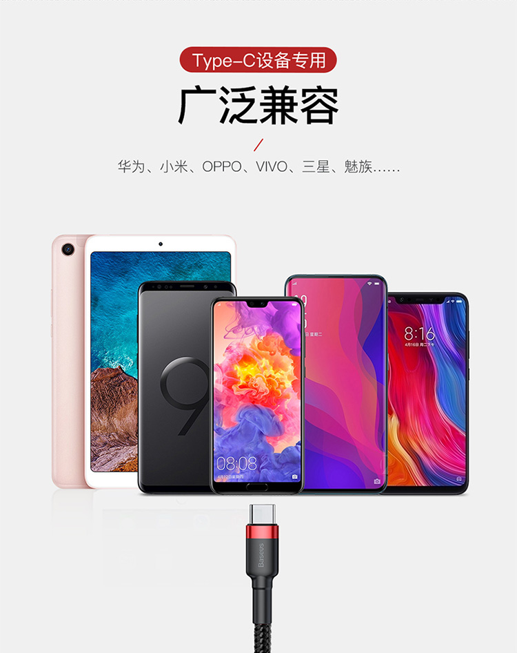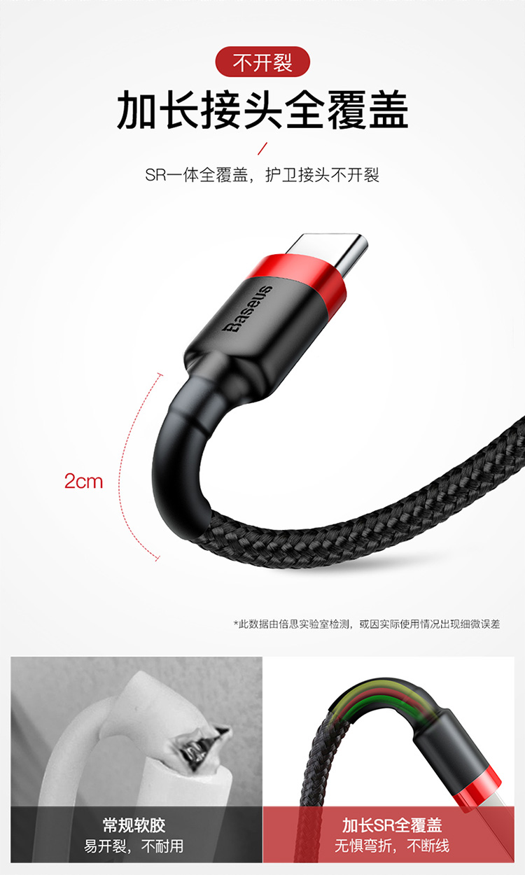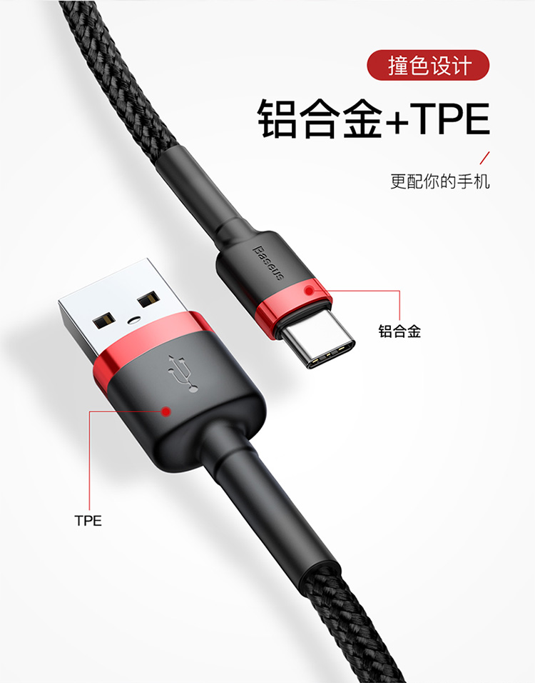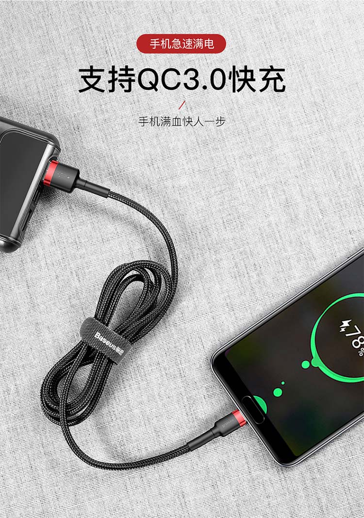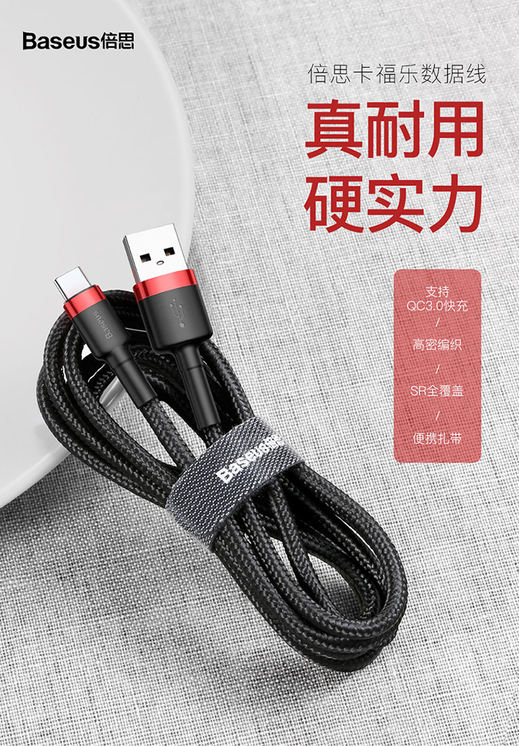 倍思 卡福乐数据线 USB For Type-C 2A 适用华为/荣耀/小米/oppo/vivo安卓充电线