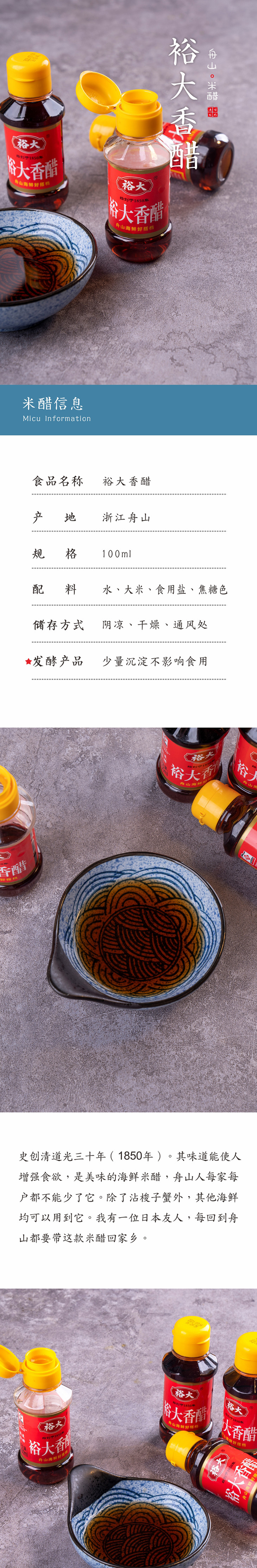 【闹妈海鲜】裕大米酿造全酿造醋100ml蘸舟山海鲜的佐食伴侣