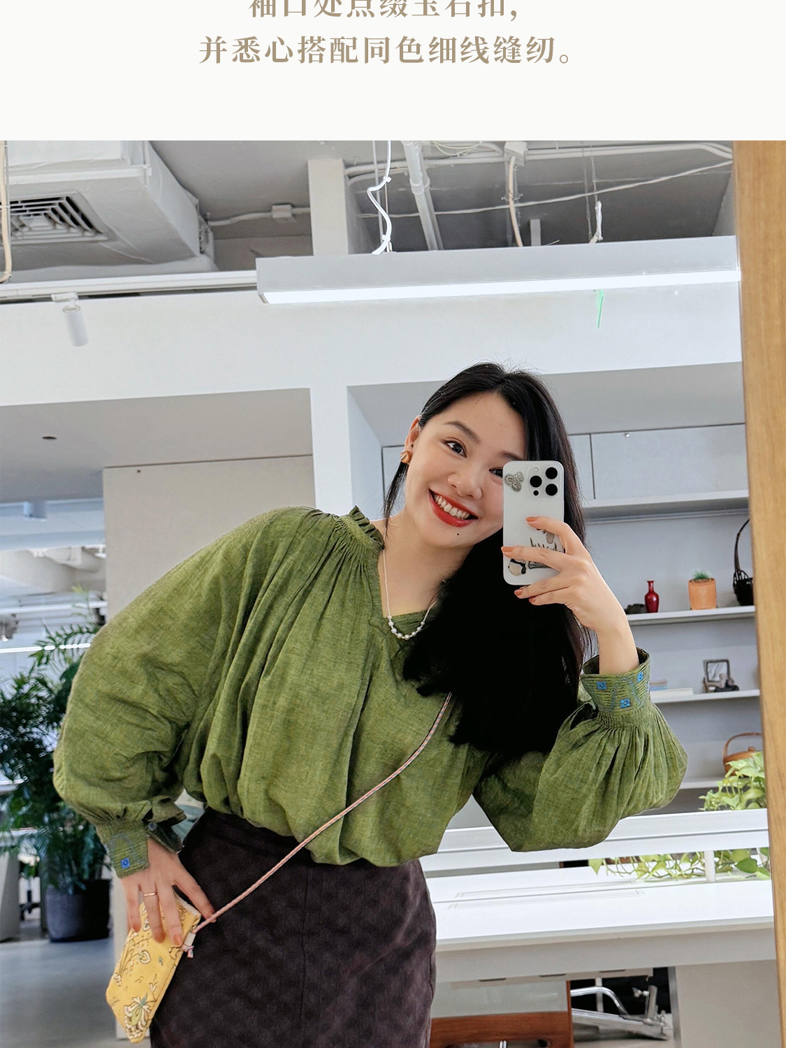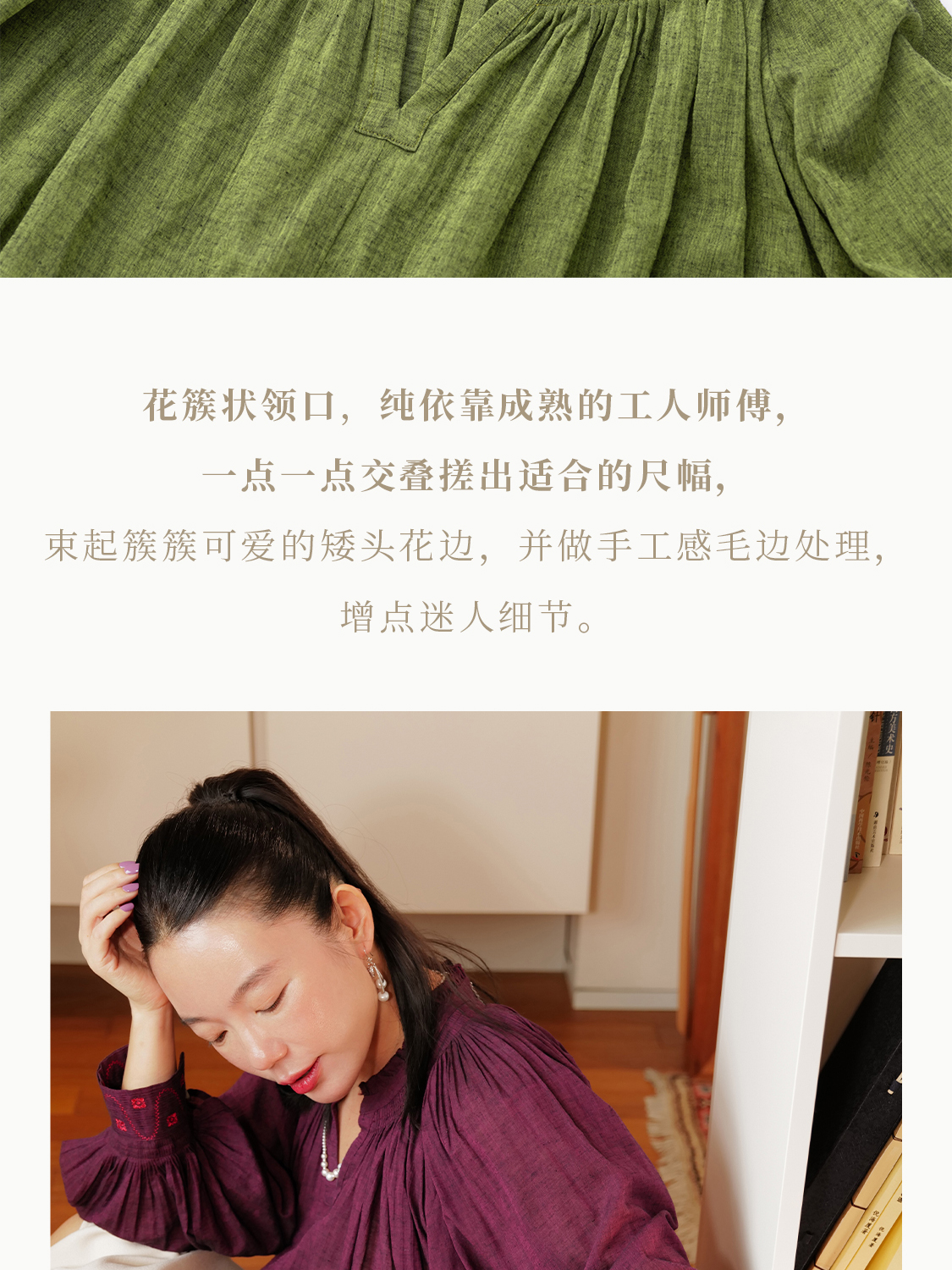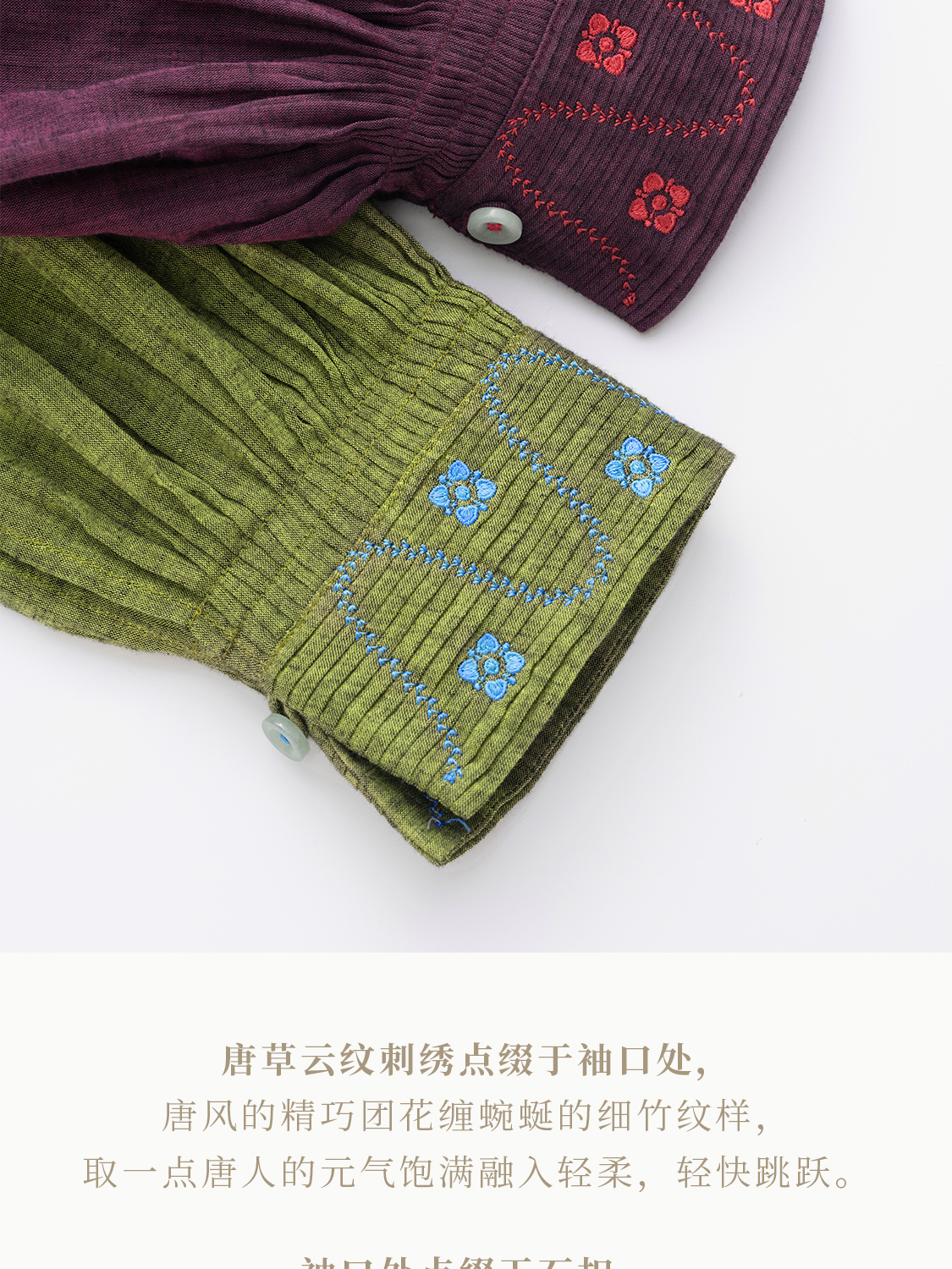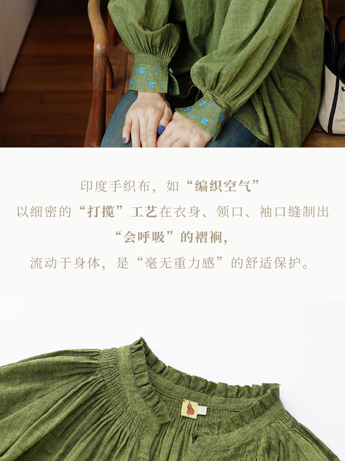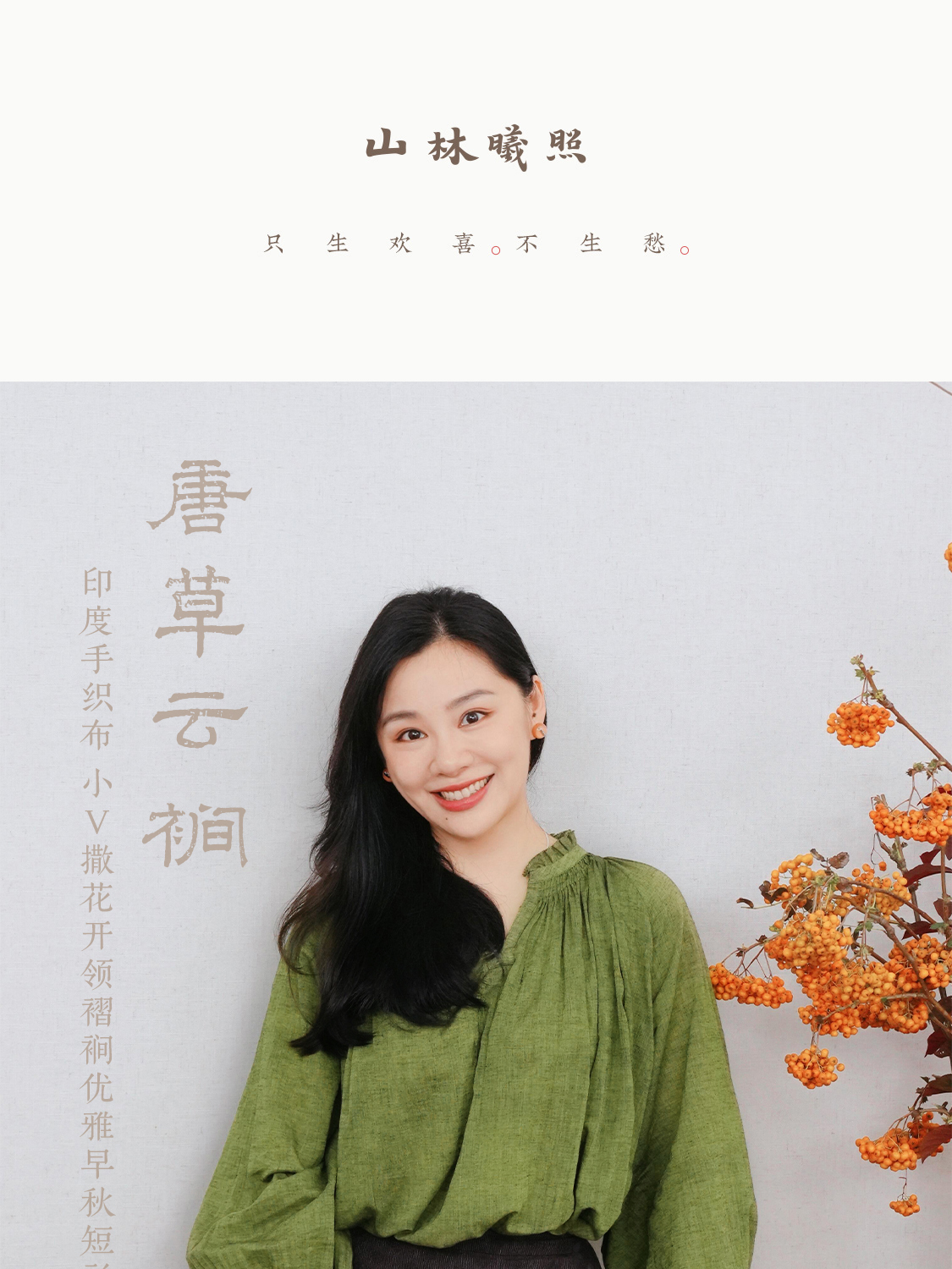 唐草云裥 印度手织布 小V撒花开领褶裥优雅早秋短衫 山林曦照