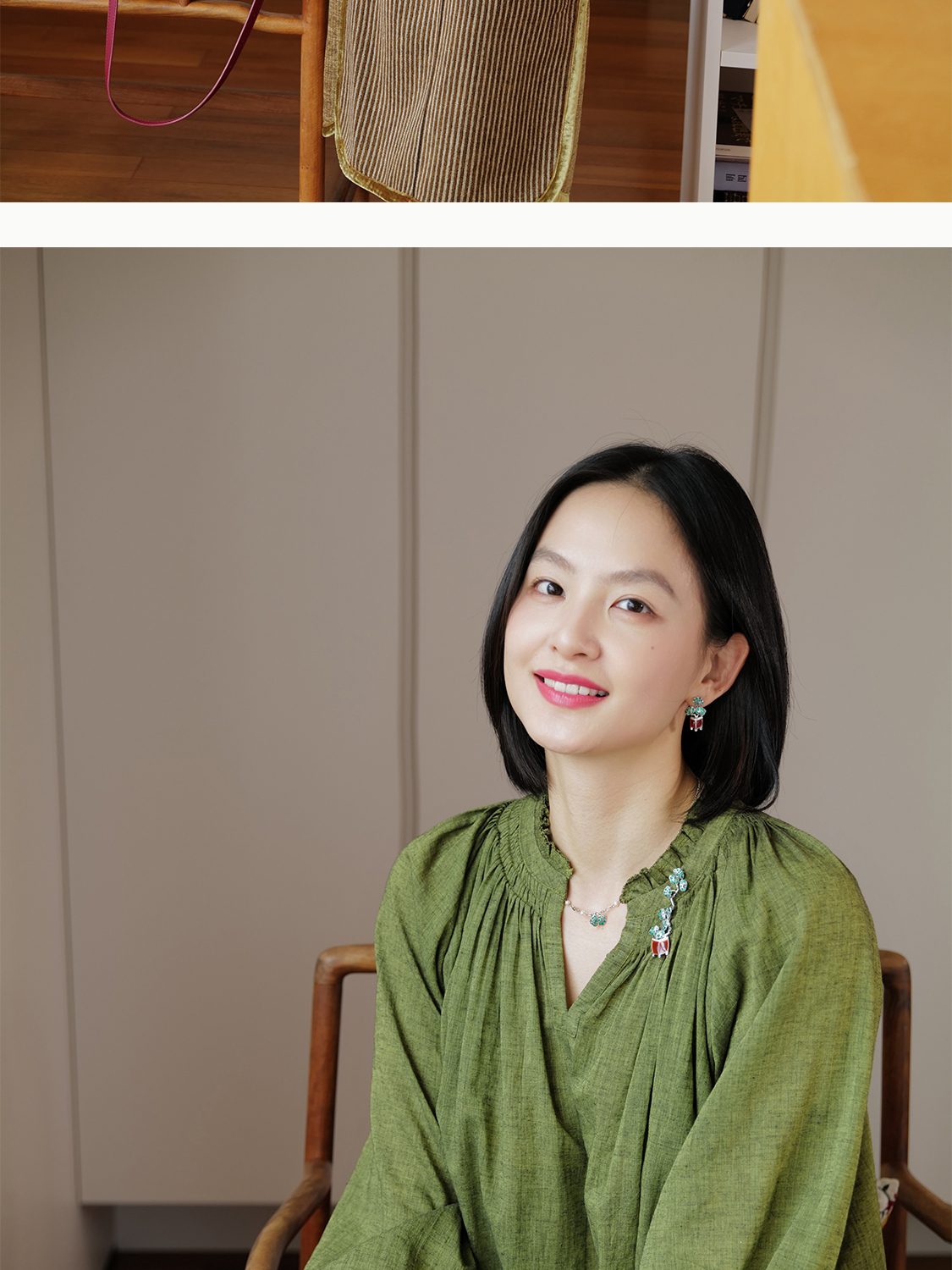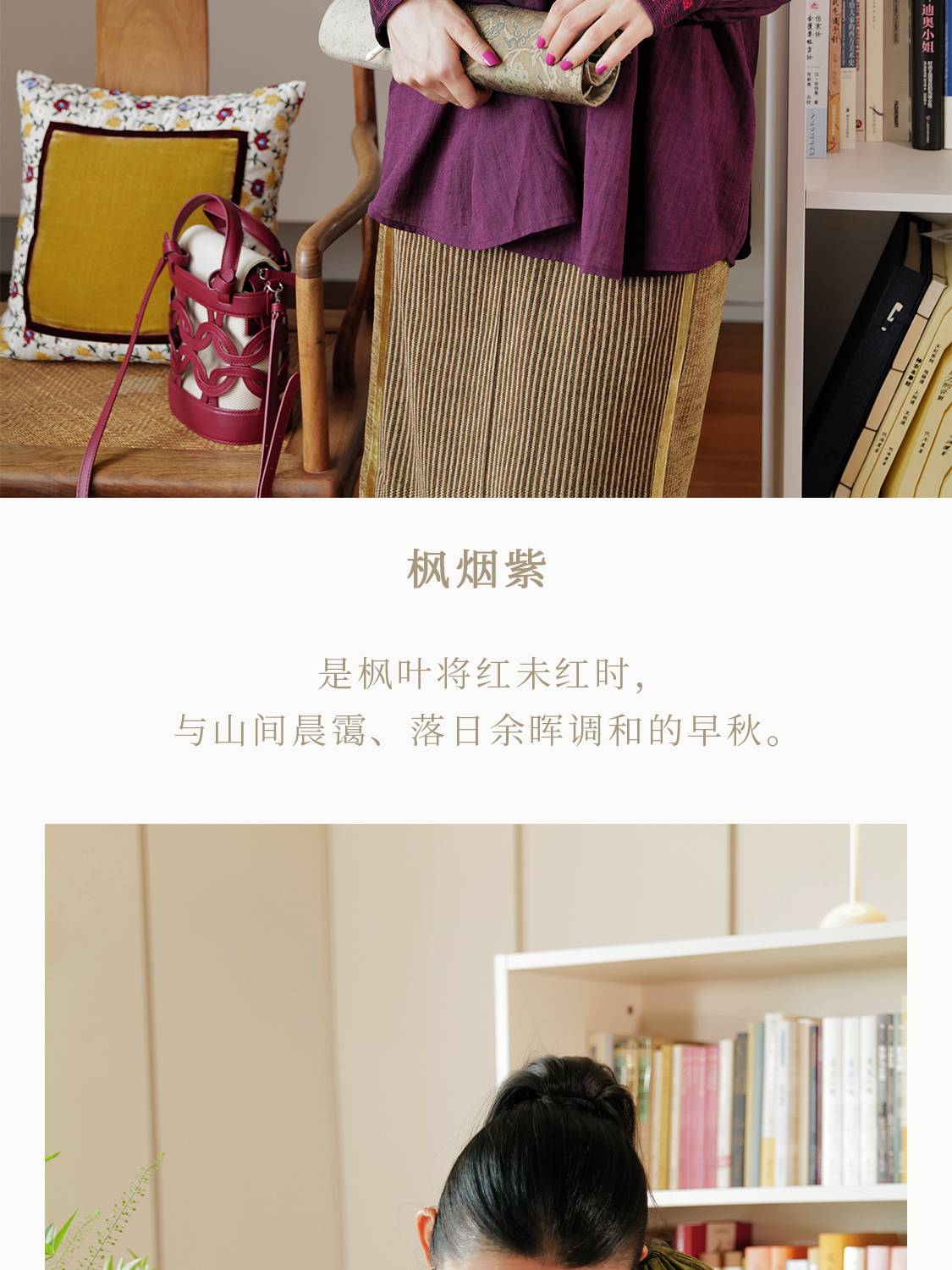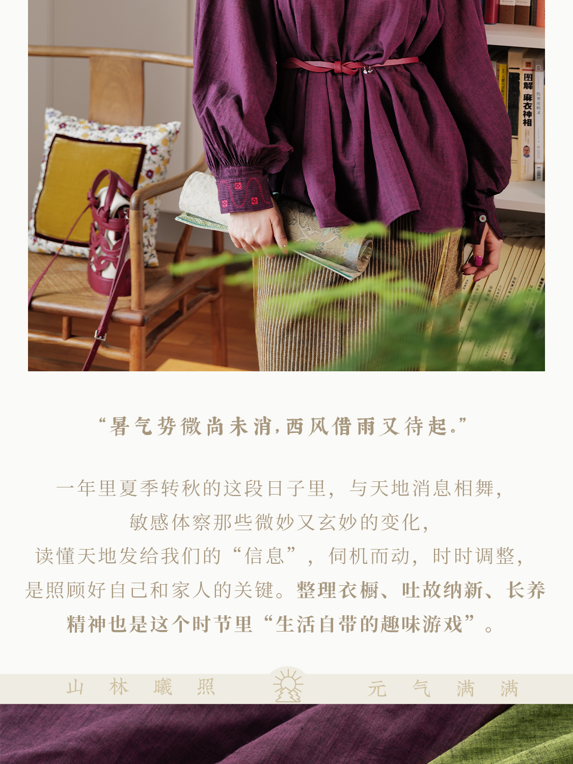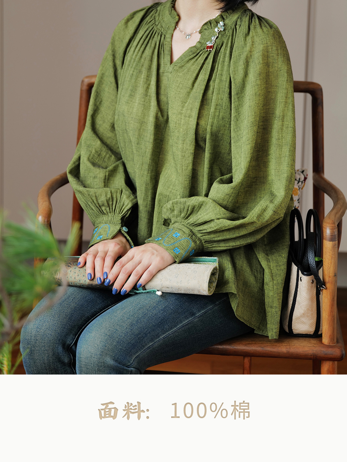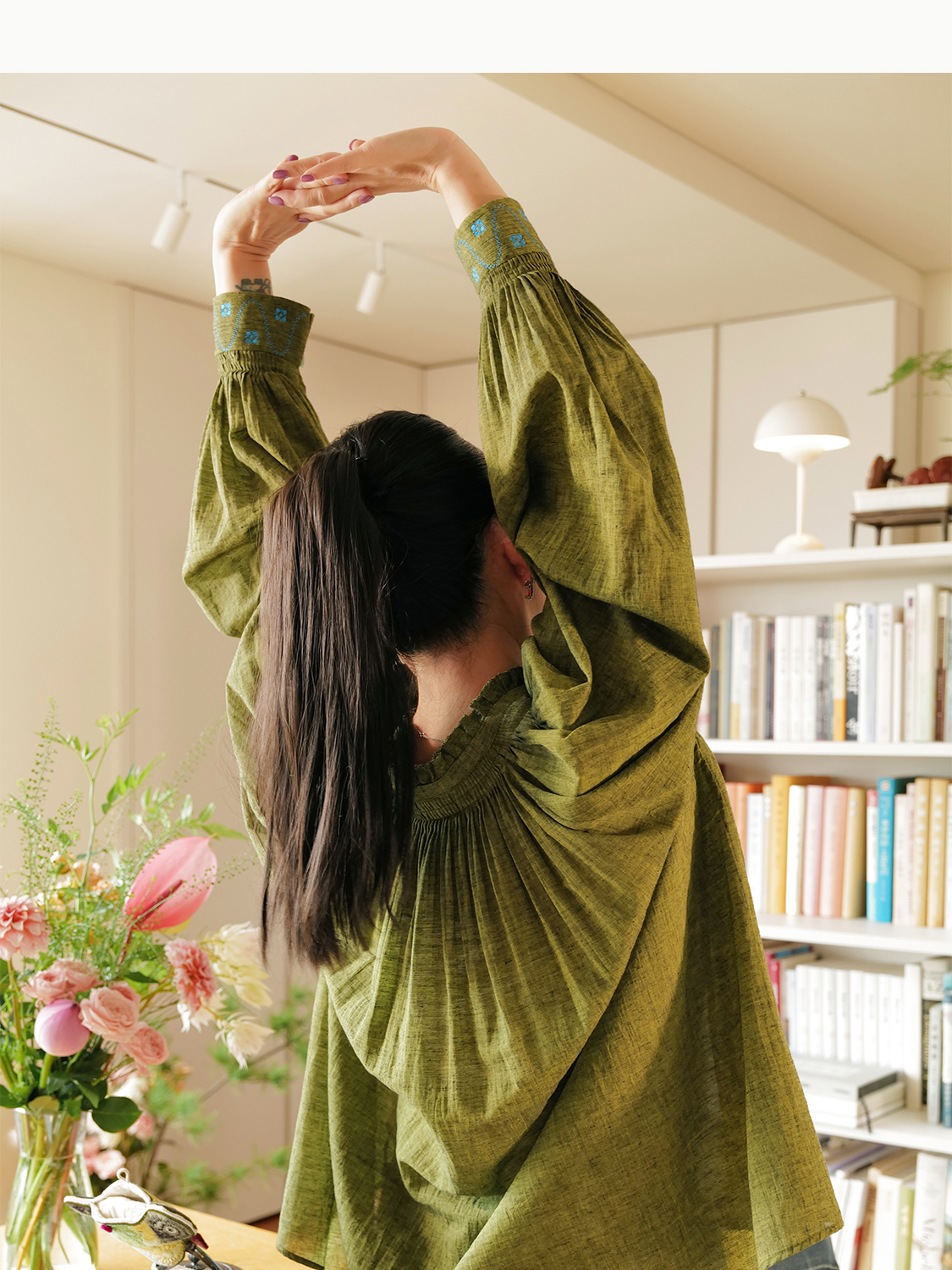唐草云裥 印度手织布 小V撒花开领褶裥优雅早秋短衫 山林曦照