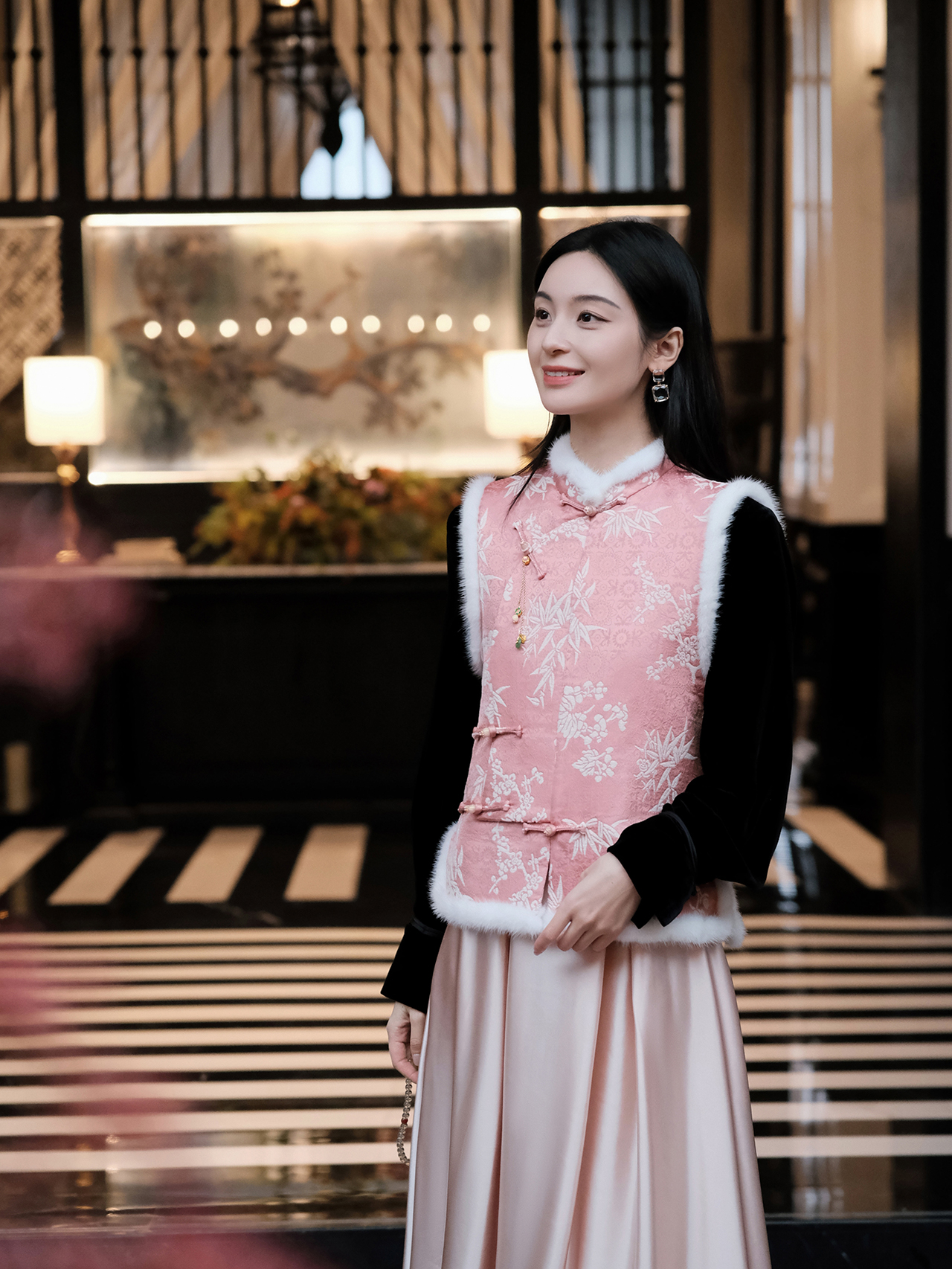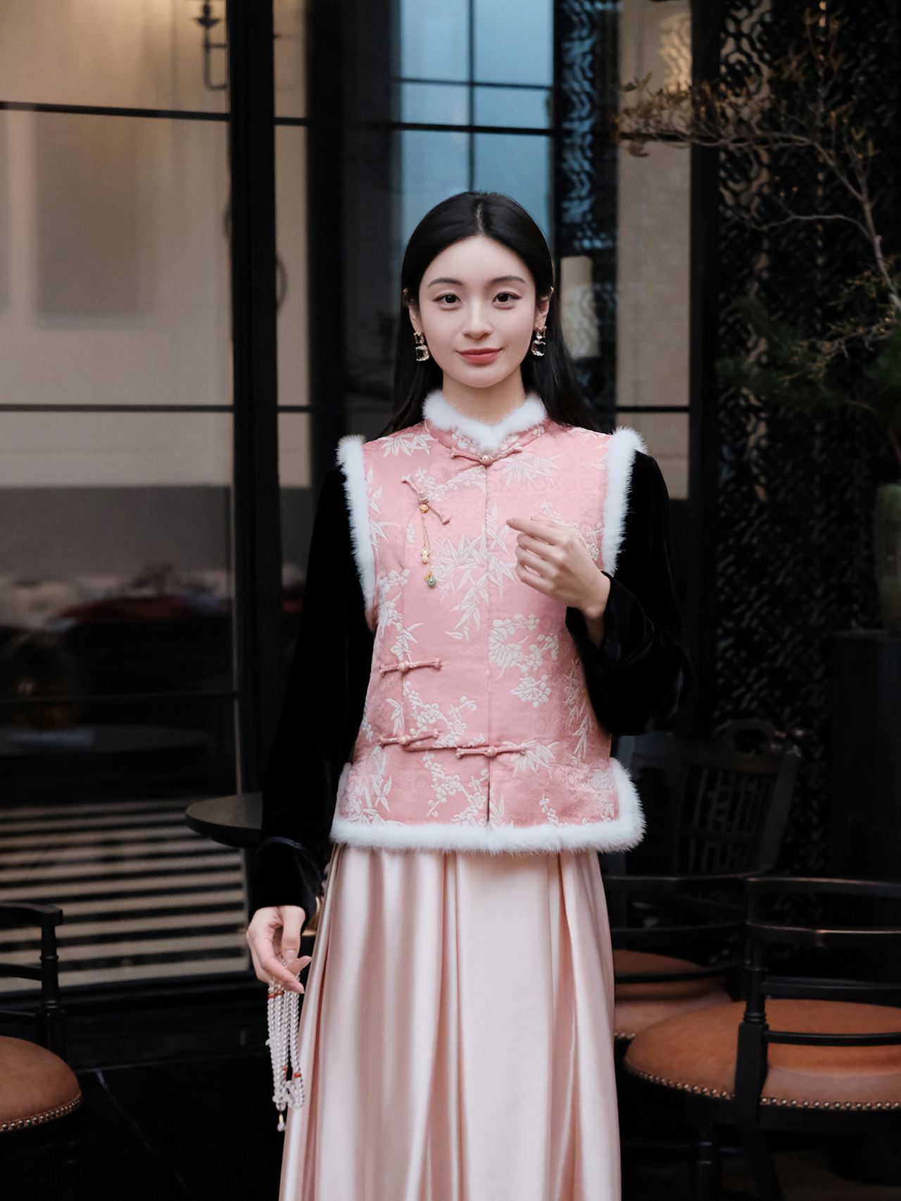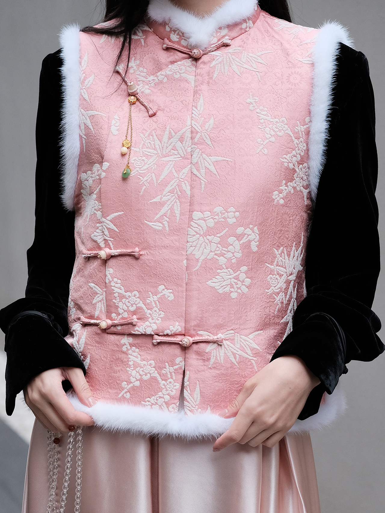 盛唐婧 | 轻奢新中式提花绒拼水貂马甲