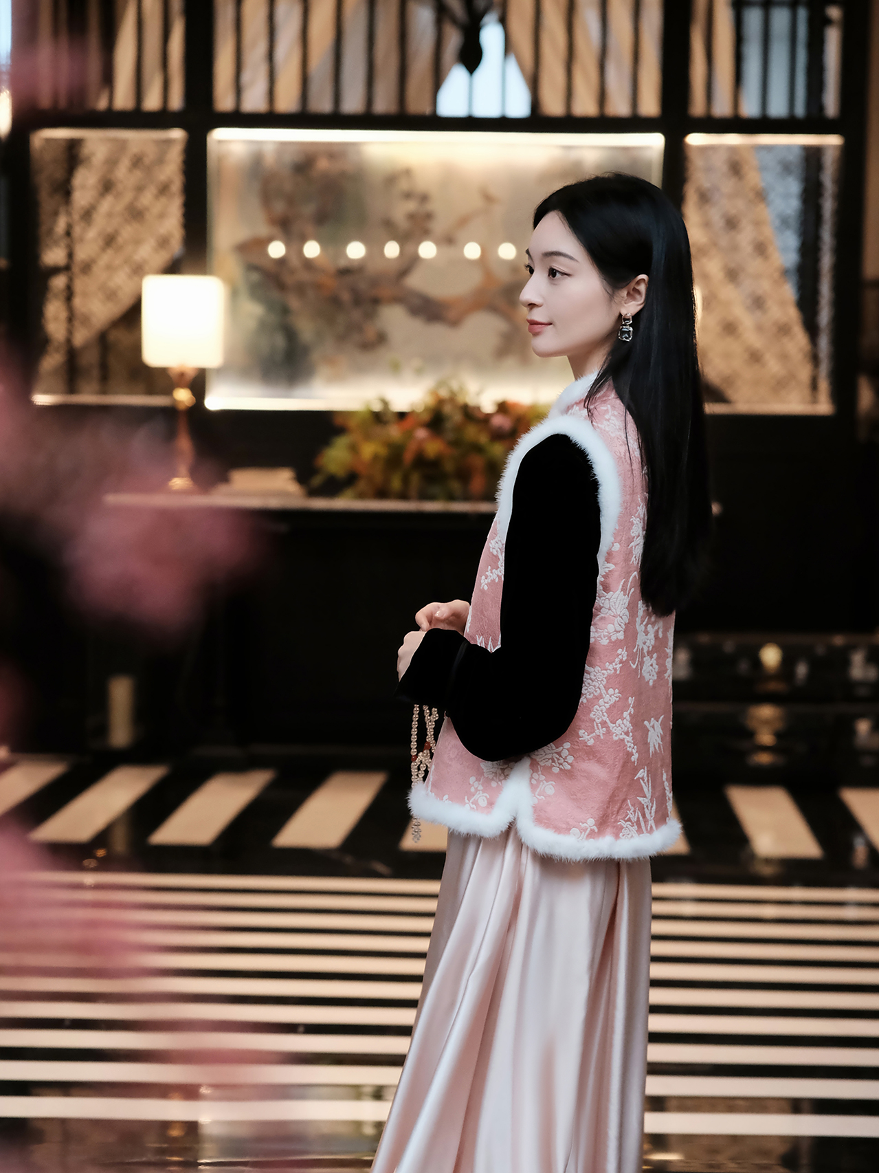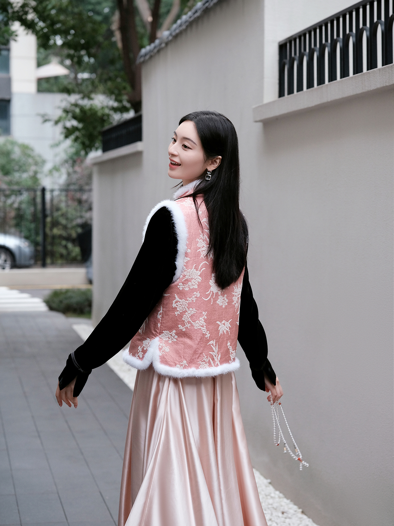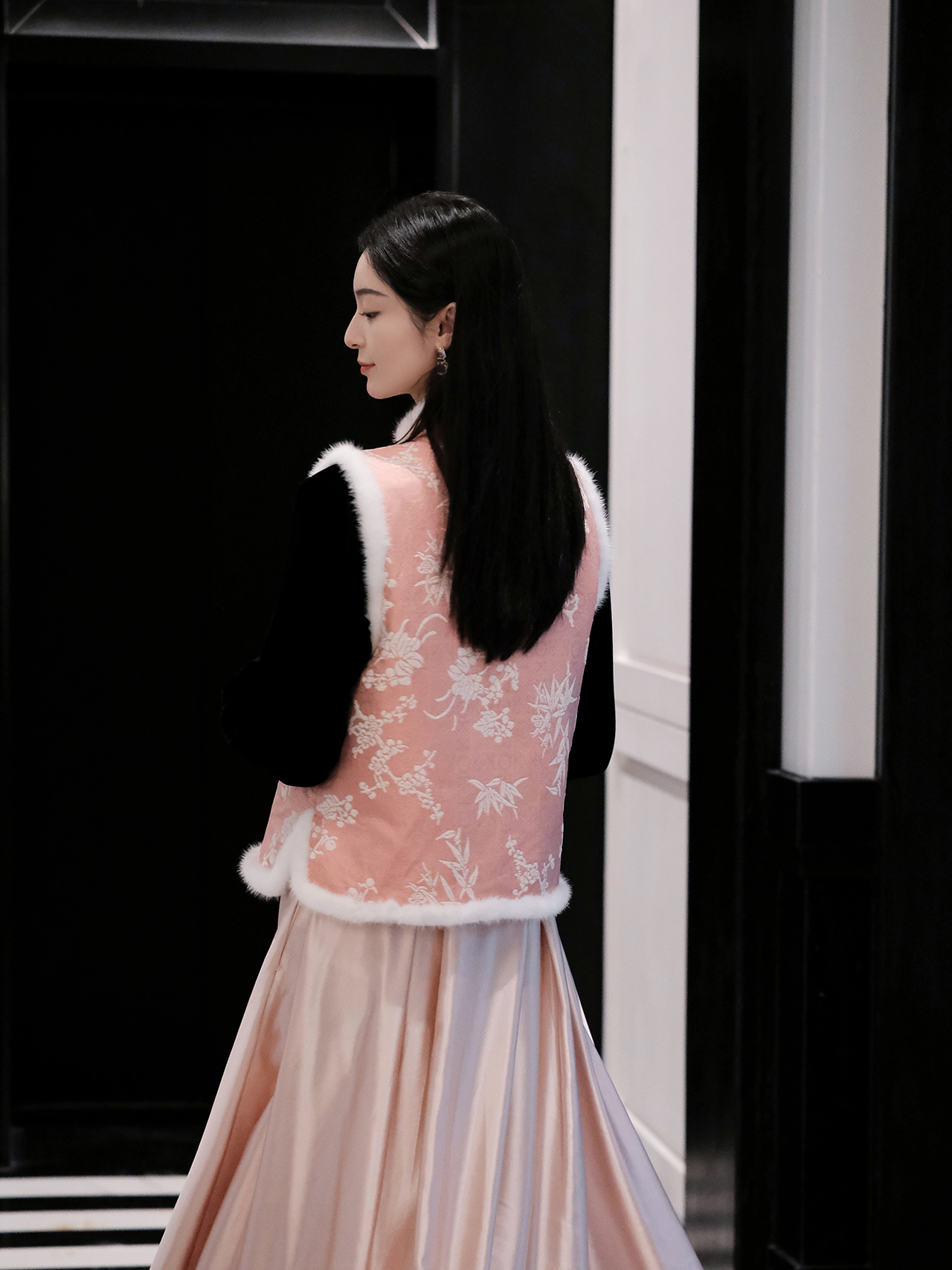 盛唐婧 | 轻奢新中式提花绒拼水貂马甲