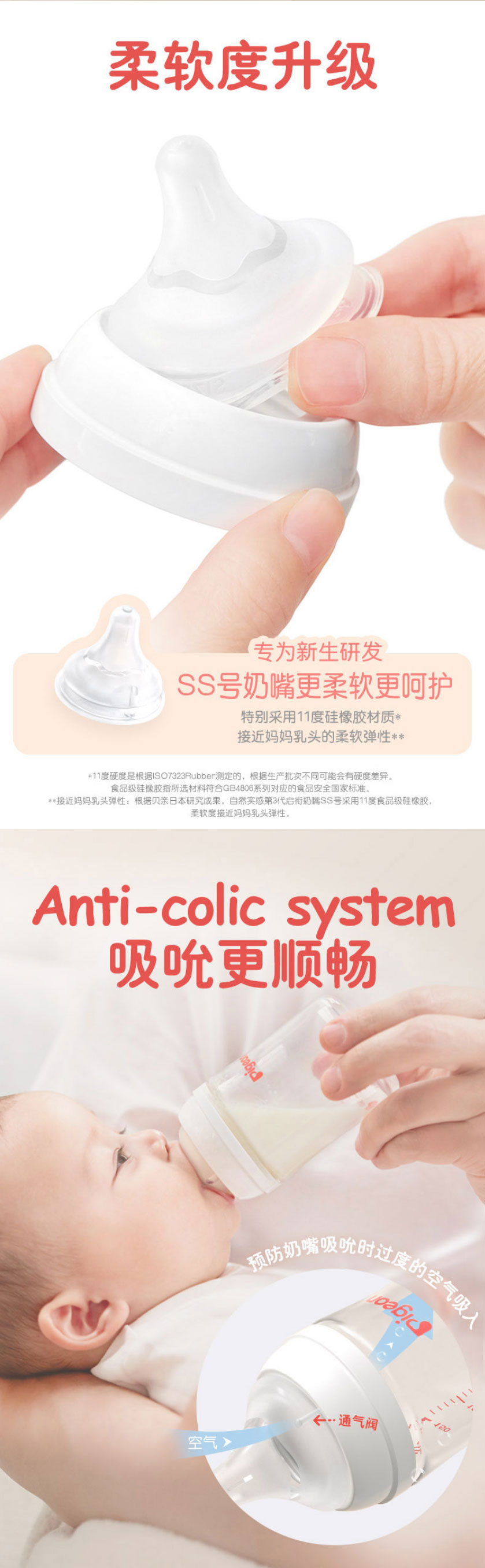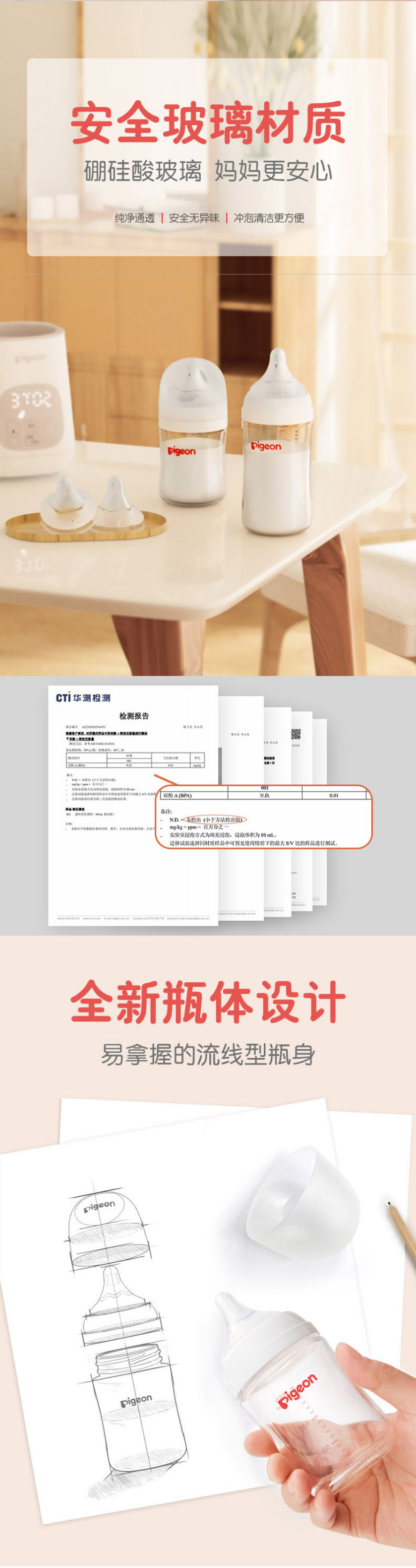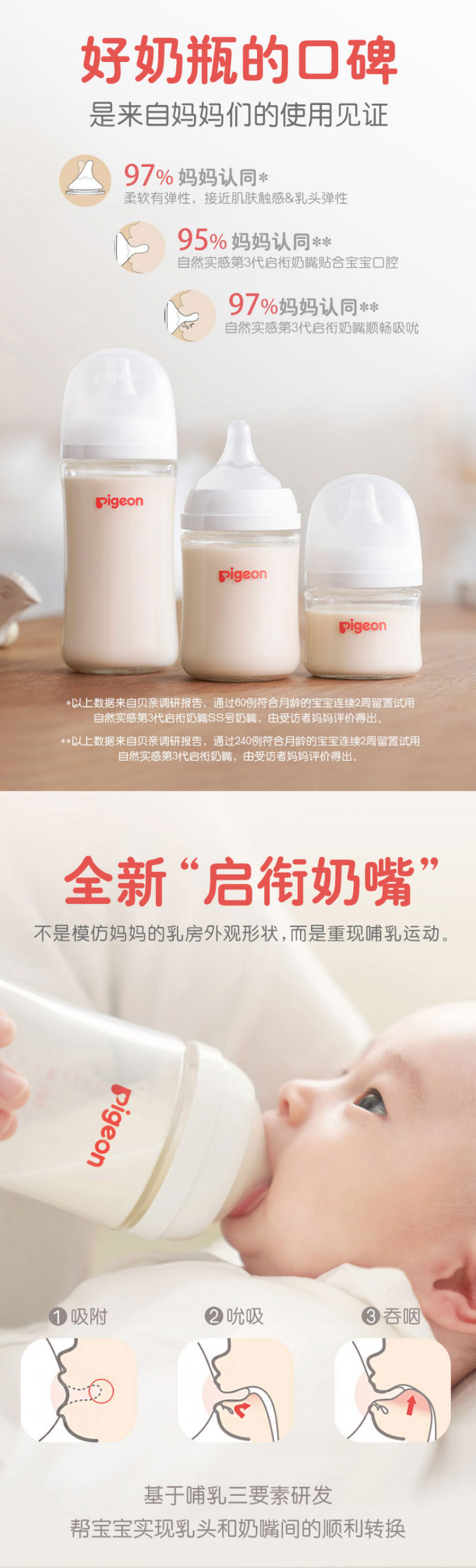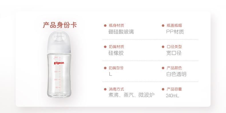 贝亲240ml自然实感Ⅲ宽口径玻璃奶瓶(L号奶嘴)AA188