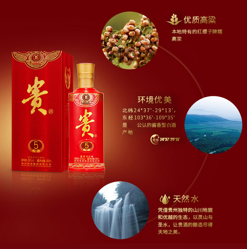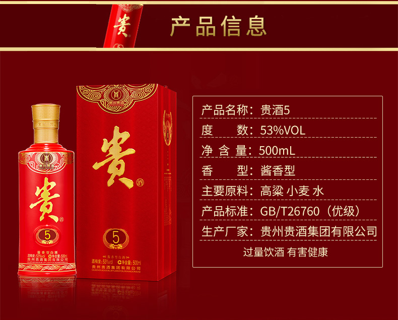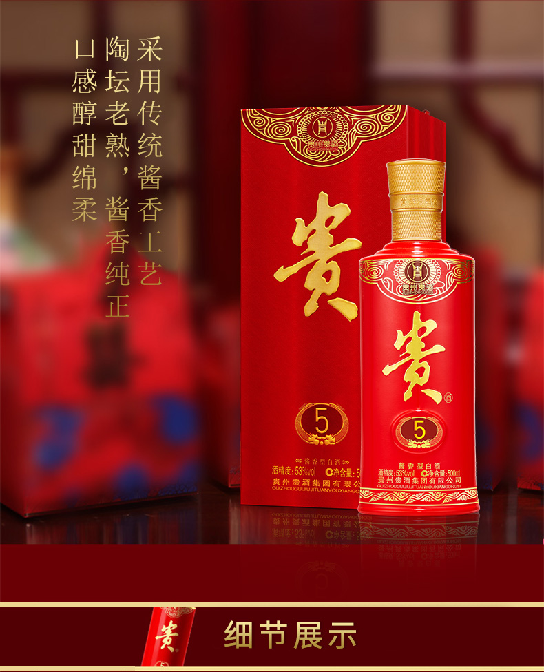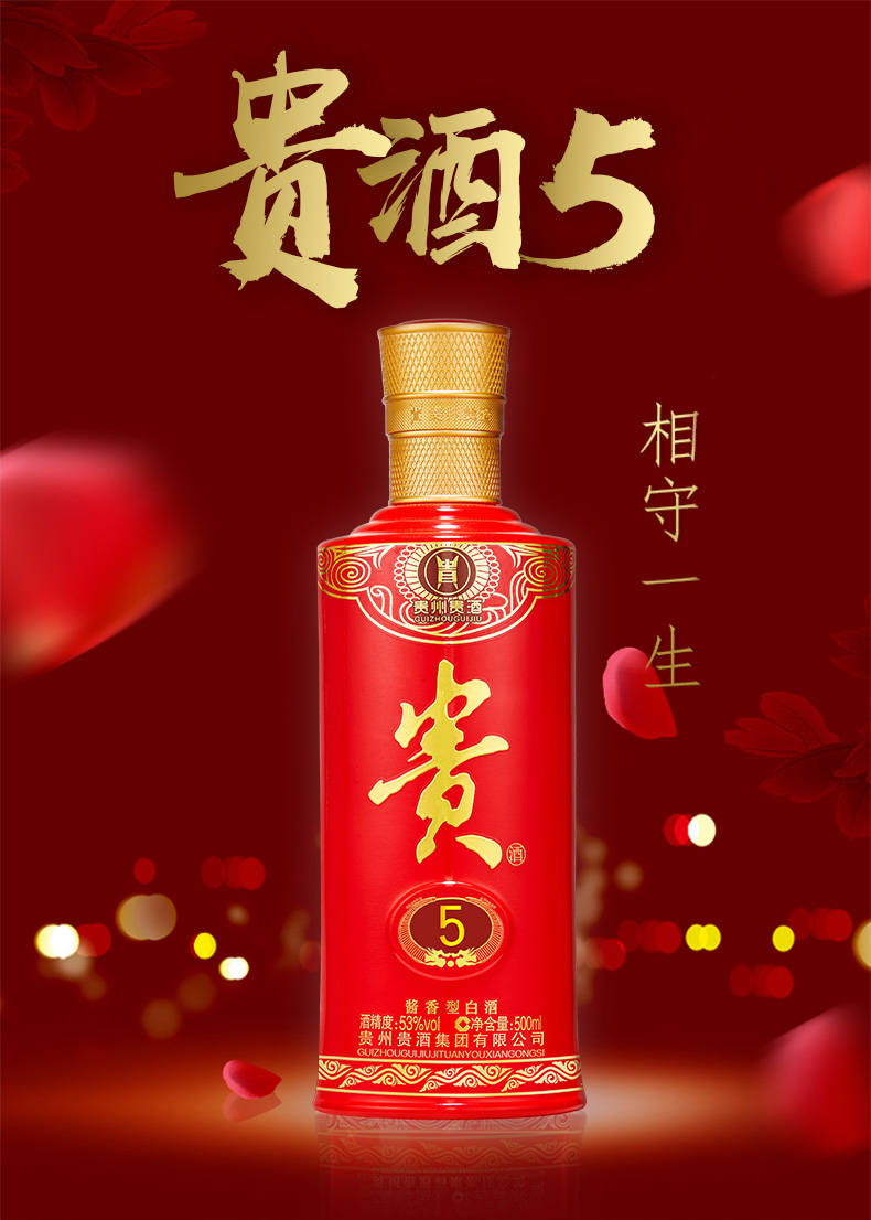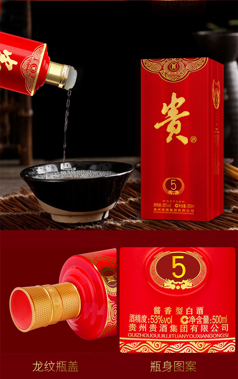贵州贵酒 贵5 酱香型白酒 500ML(53度 )
