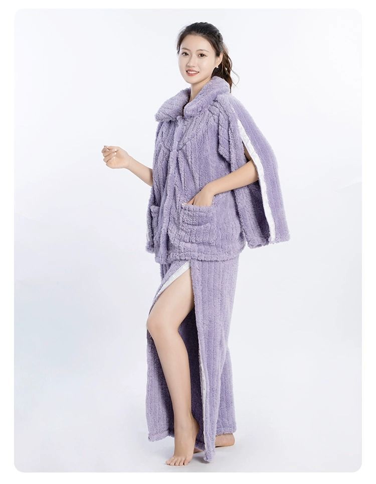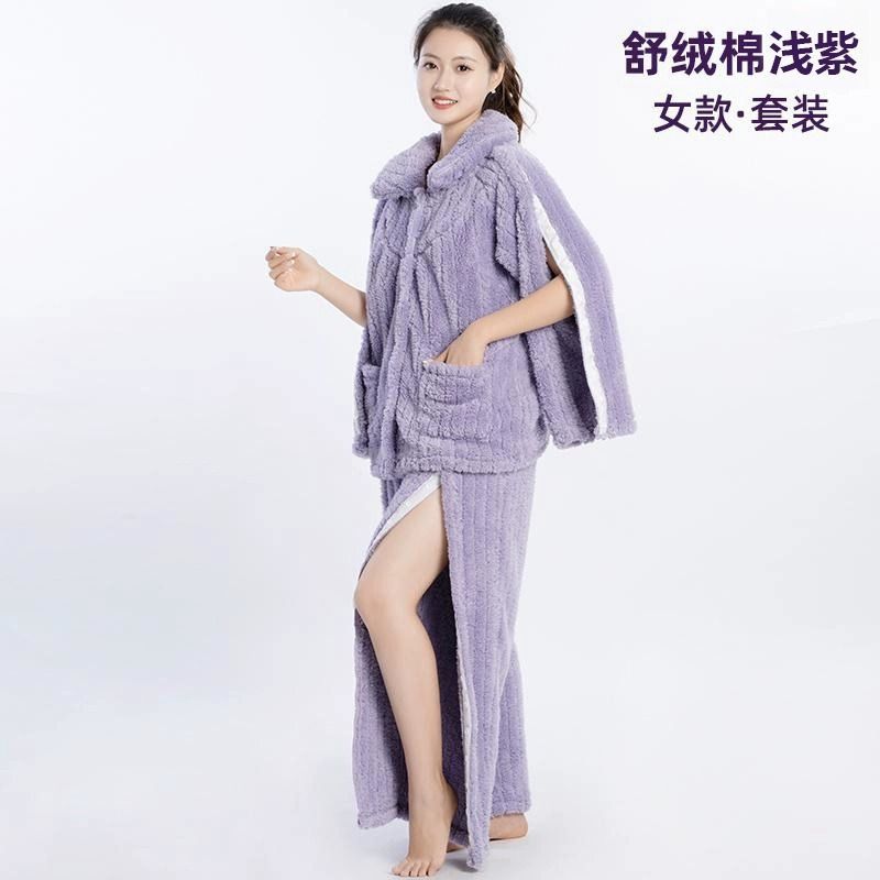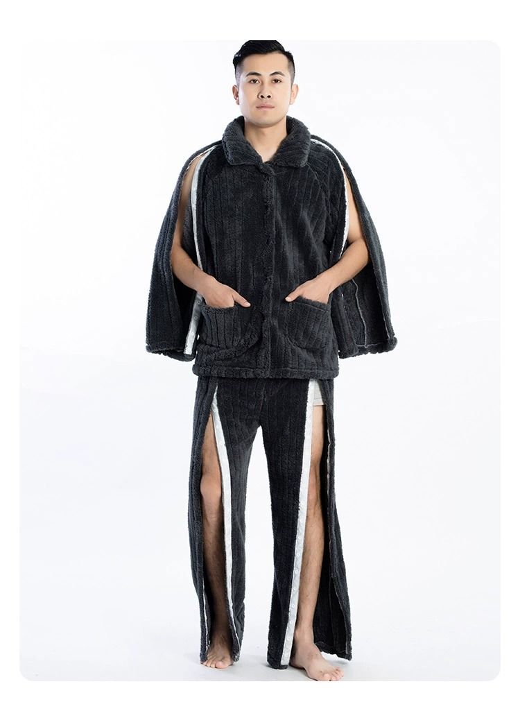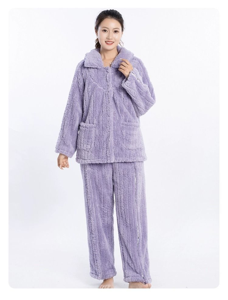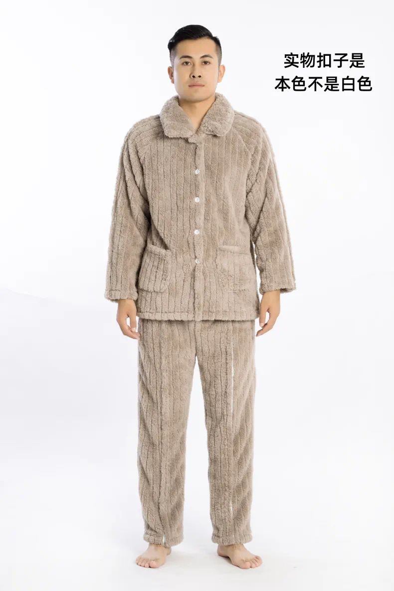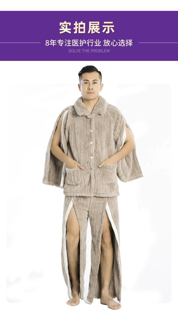秋冬加厚卧床老人布扣护理服病人防寒睡衣易穿脱护理服保暖家居服