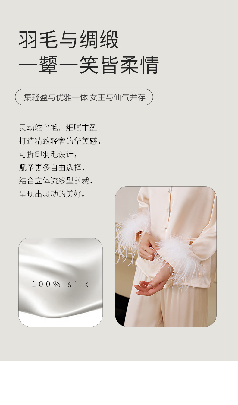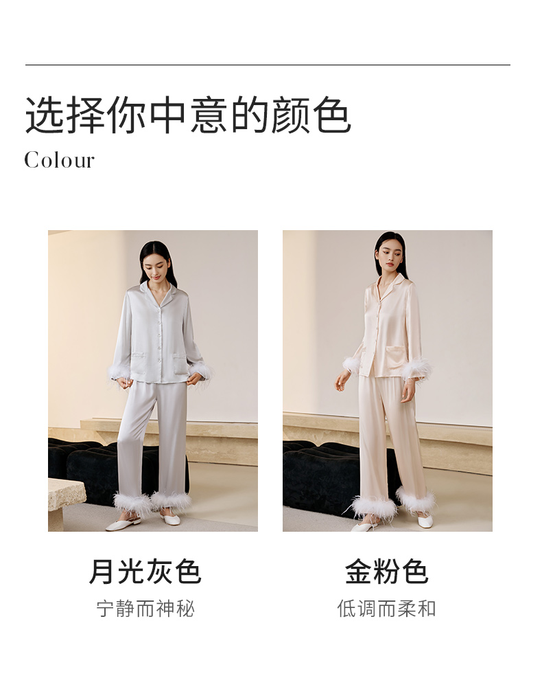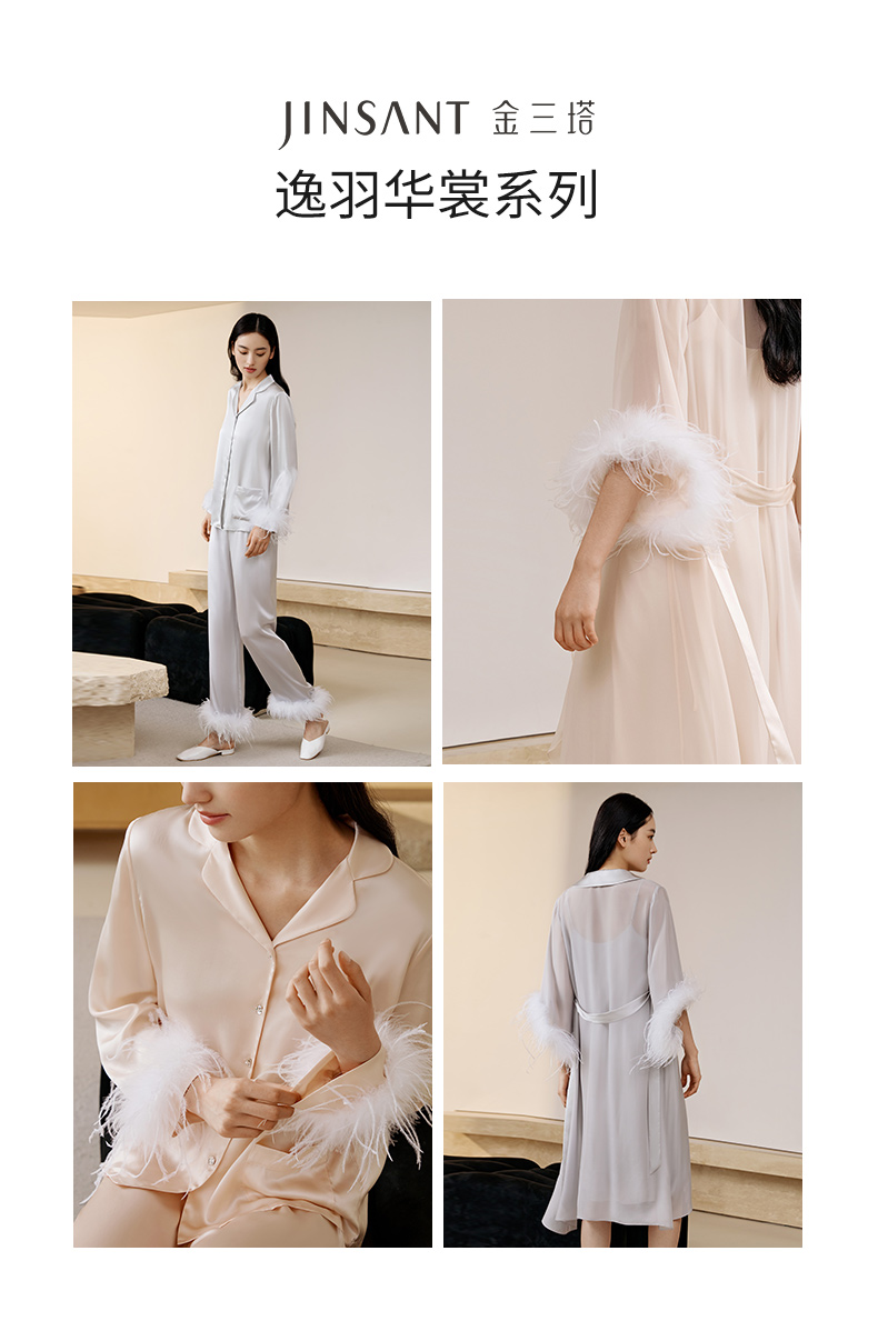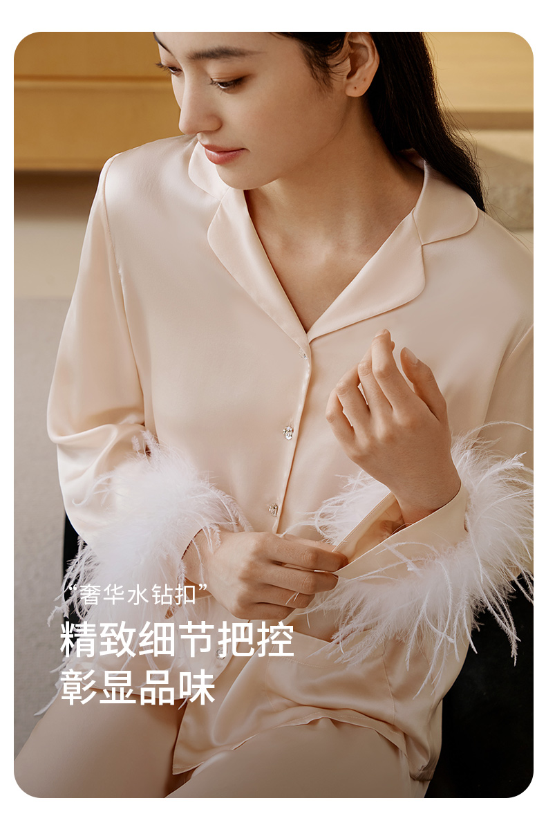 【逸羽华裳】金三塔重磅真丝睡衣女100%桑蚕丝奢华多穿优雅衣裤套 YSFEC203
