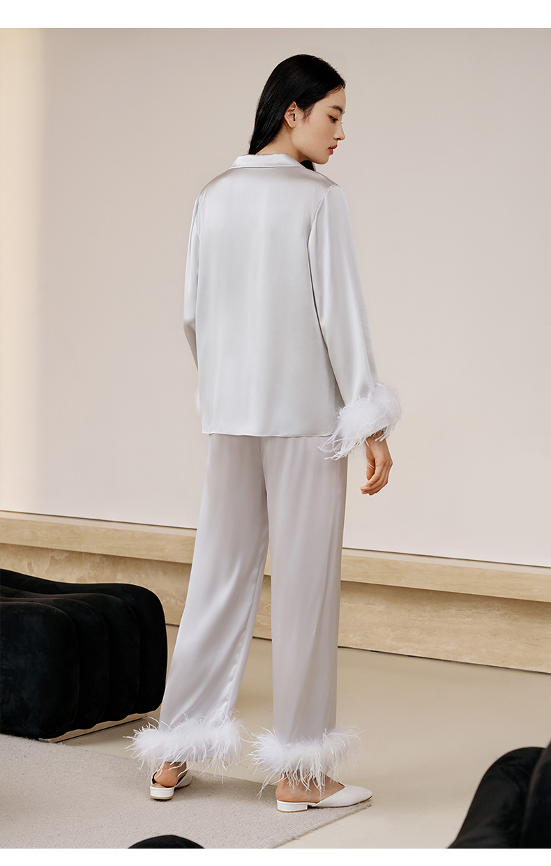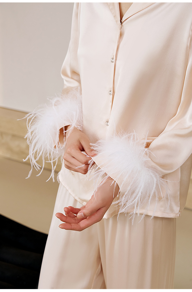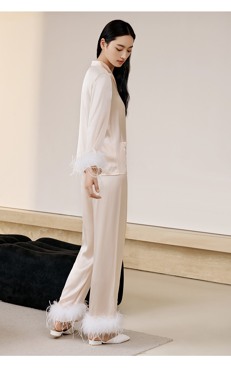 【逸羽华裳】金三塔重磅真丝睡衣女100%桑蚕丝奢华多穿优雅衣裤套 YSFEC203