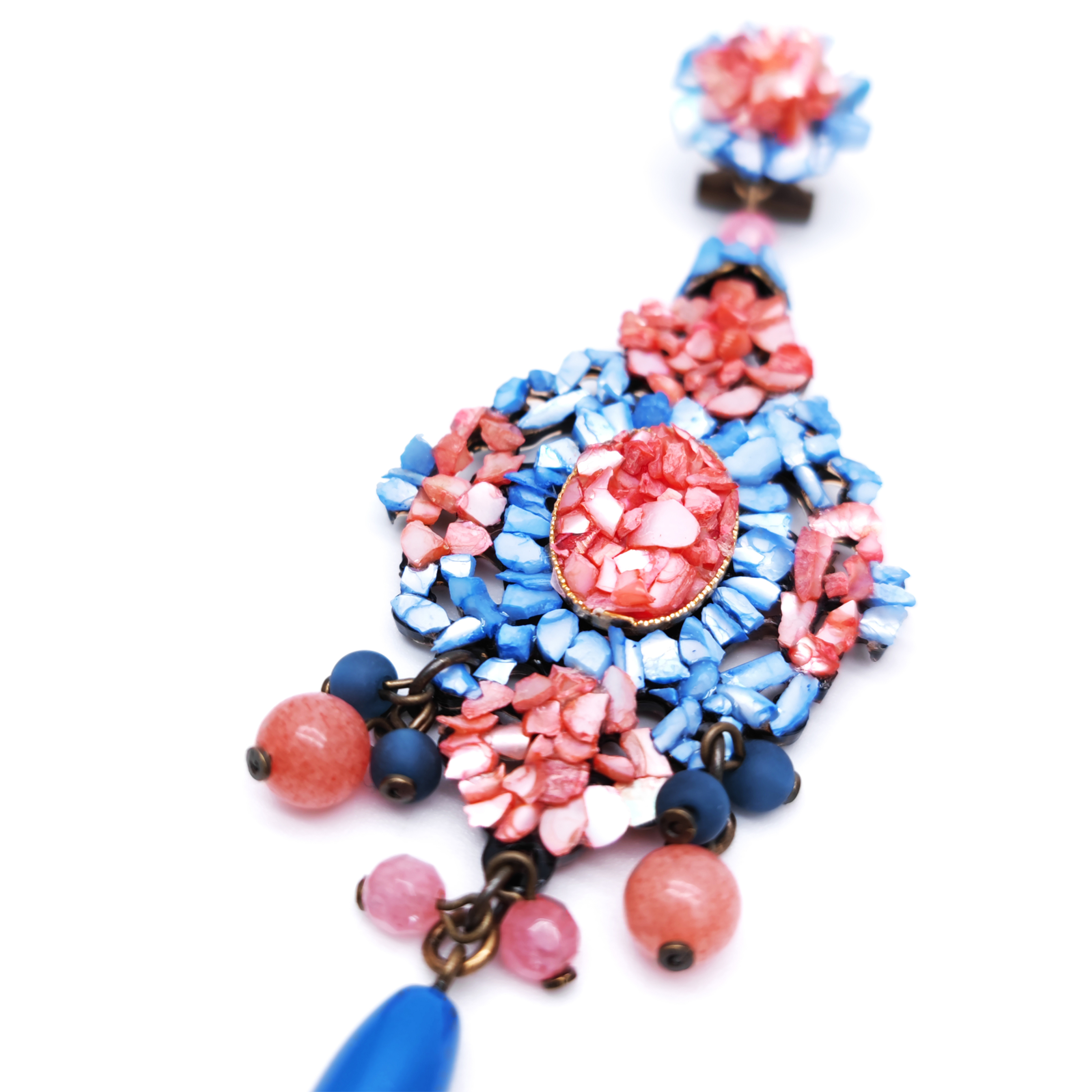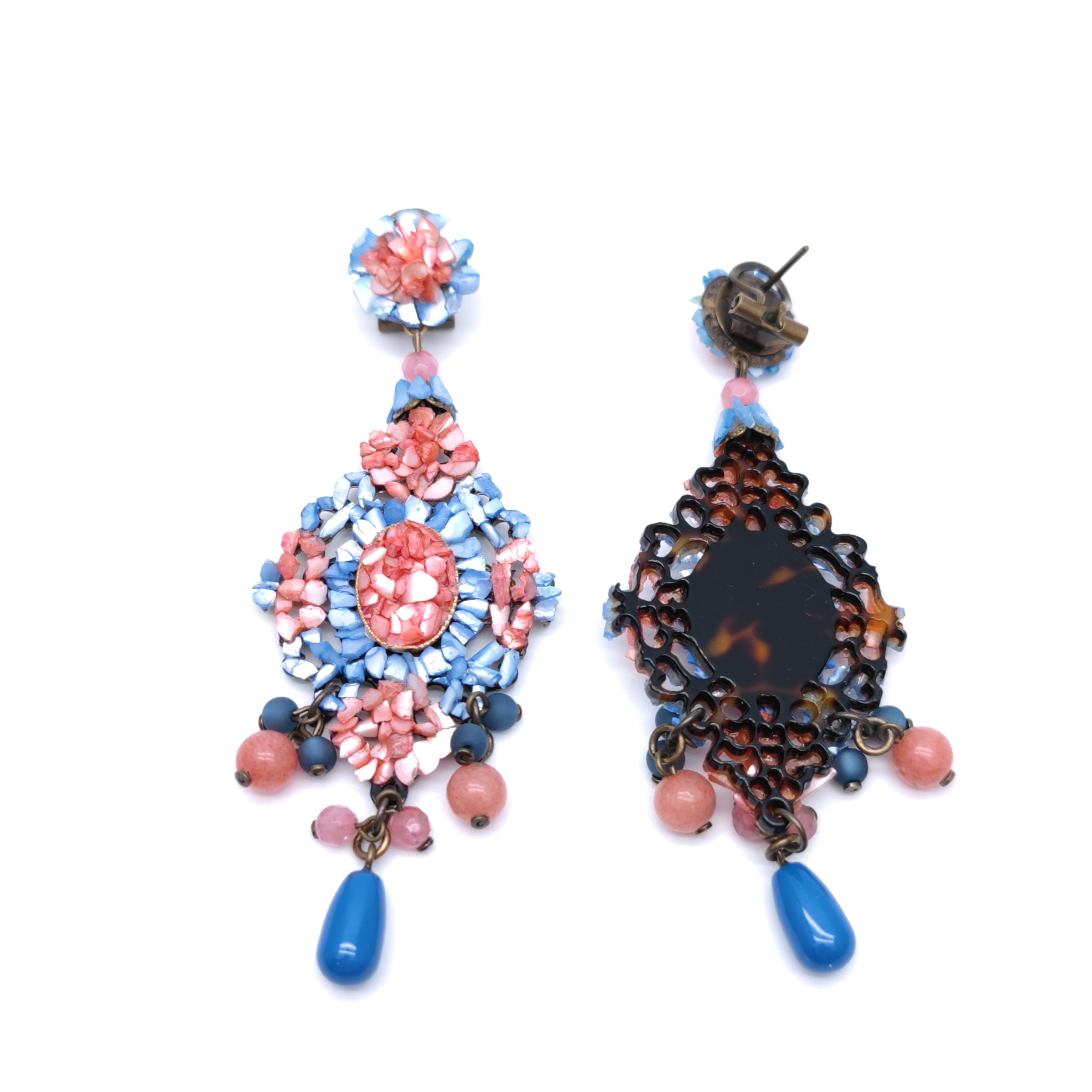 耳环材质为:珠宝级合金镀氧化银 人工玻璃水晶 珠宝级树脂