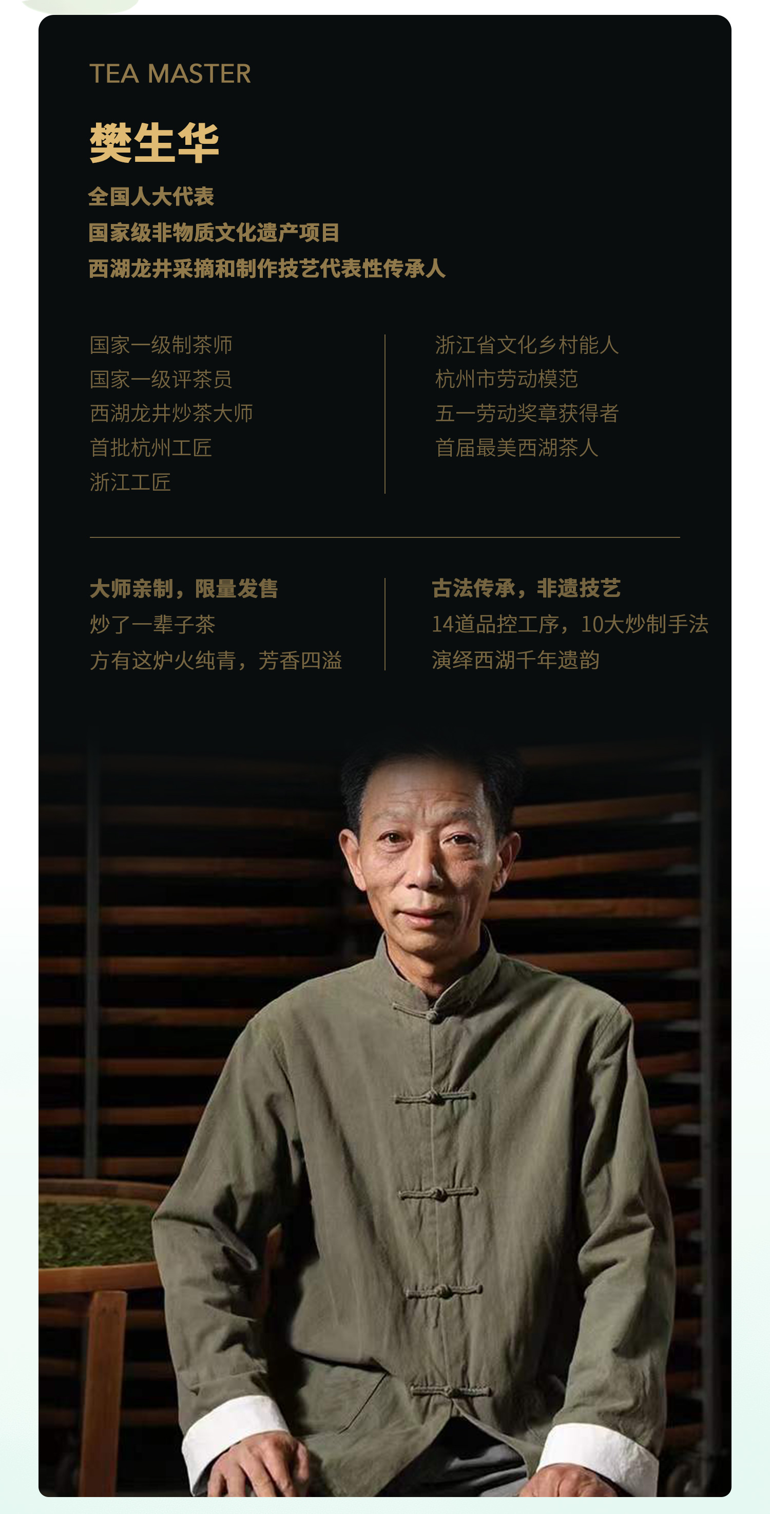 明前茶2023西湖龙井樊生华大师亲制专款【核心龙坞产区】非遗手工茶限量款茶叶
