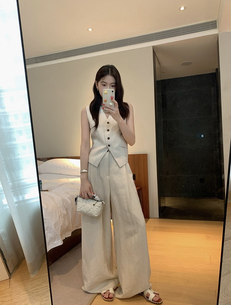 Michael Klein 老钱风天丝亚麻马甲裤子套装 上衣6597+裤子7515 (下单3-7天发货)