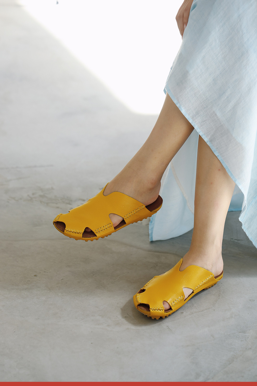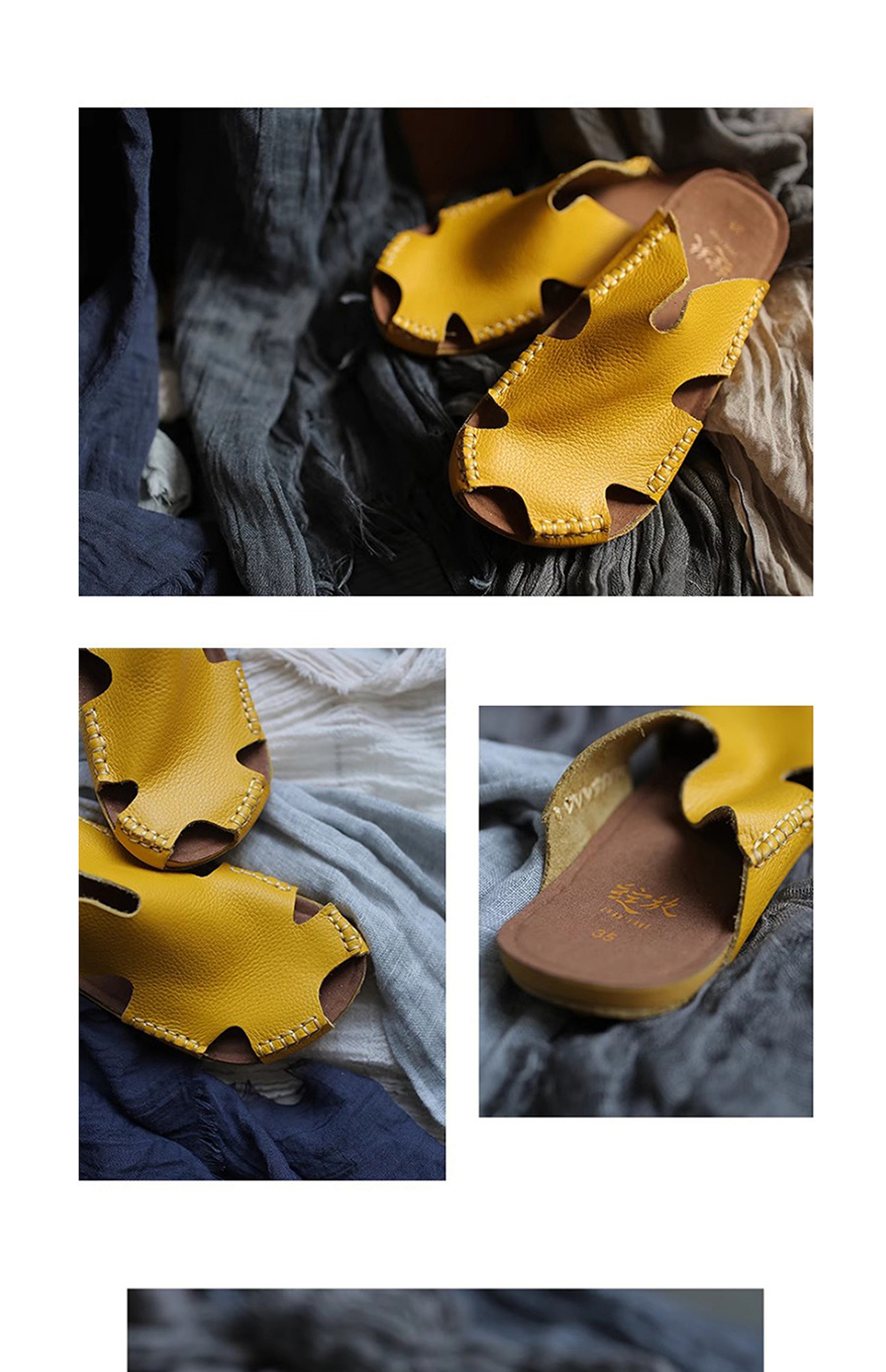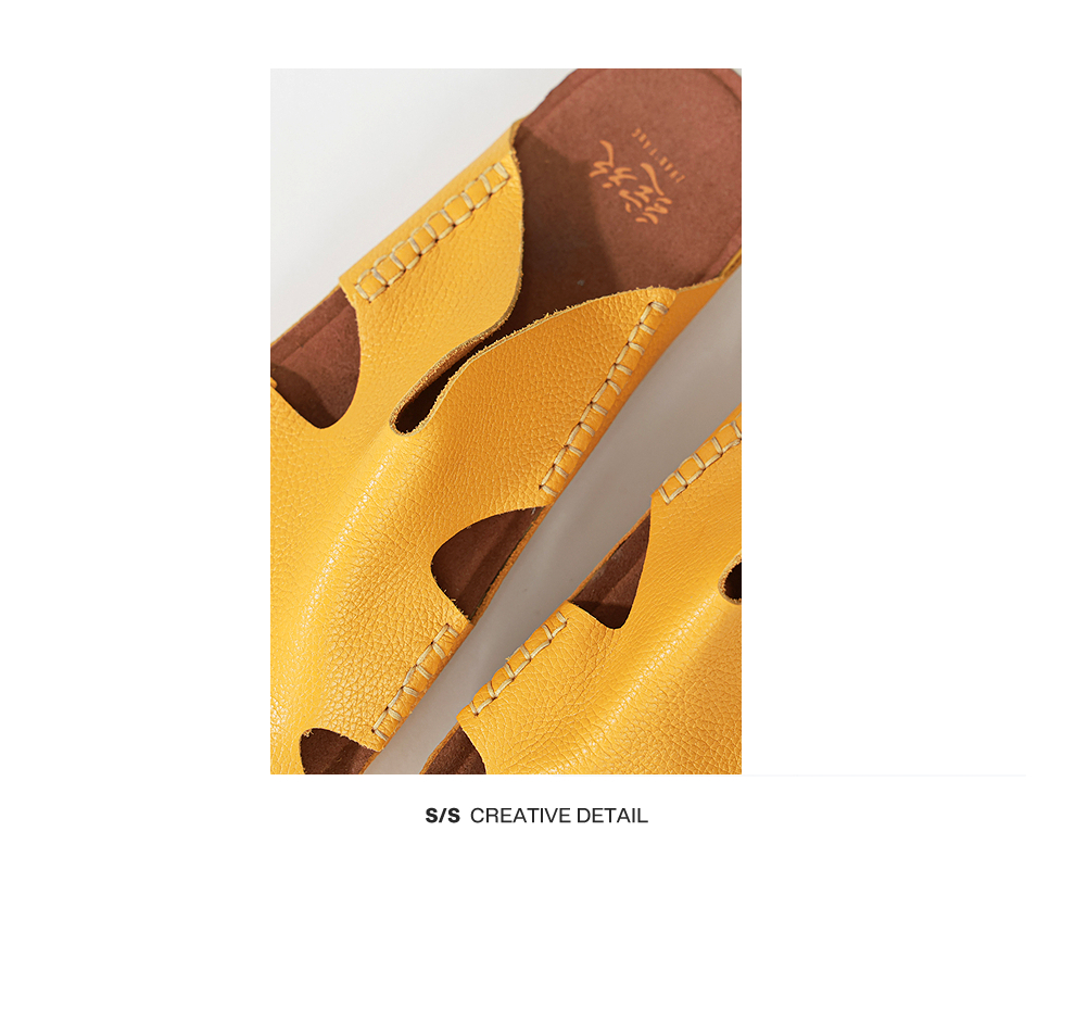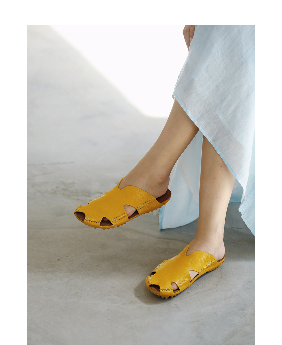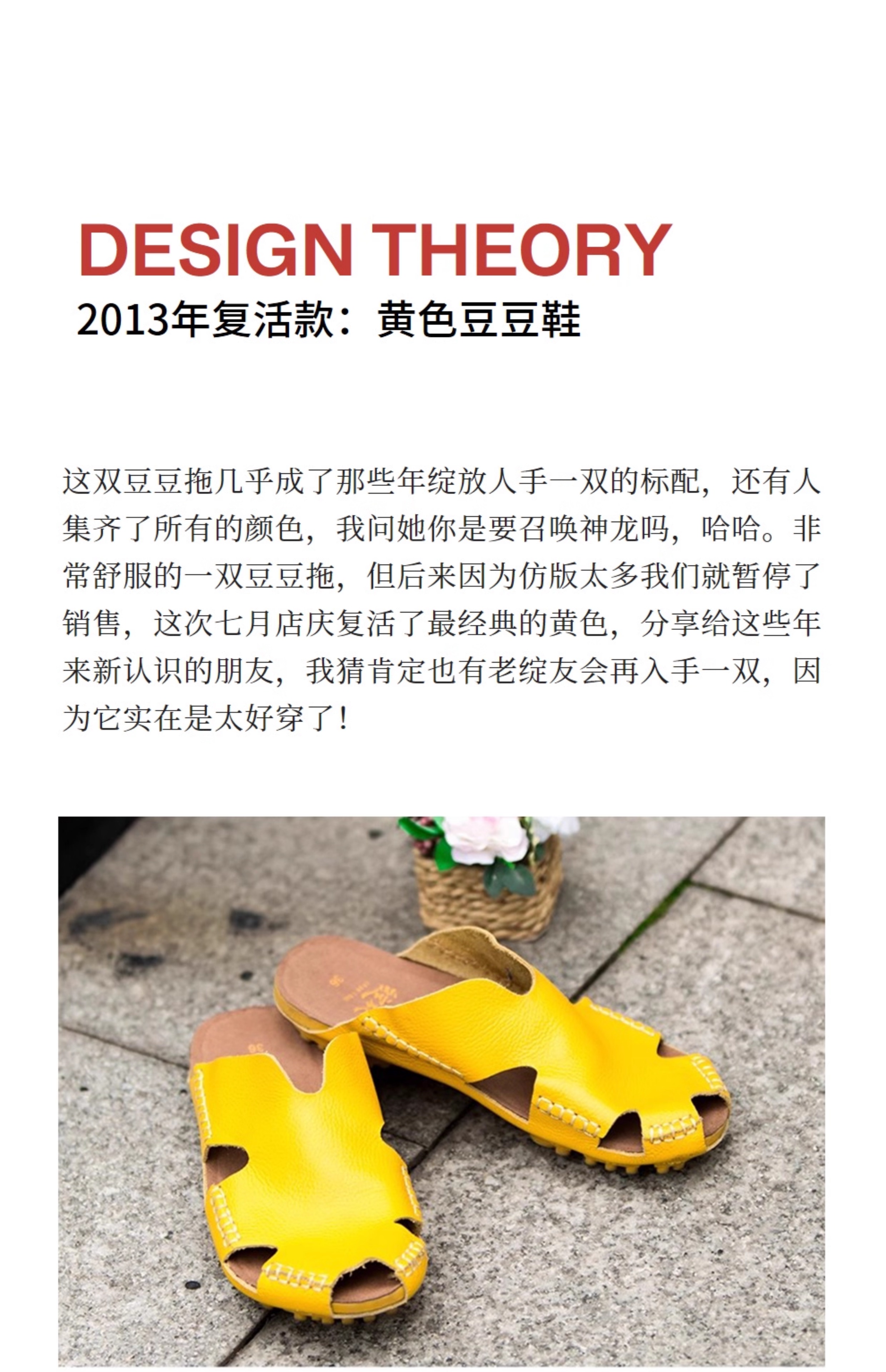 绽放女装268朵/限量复活款·文艺多色真皮豆豆底休闲平跟拖鞋女款