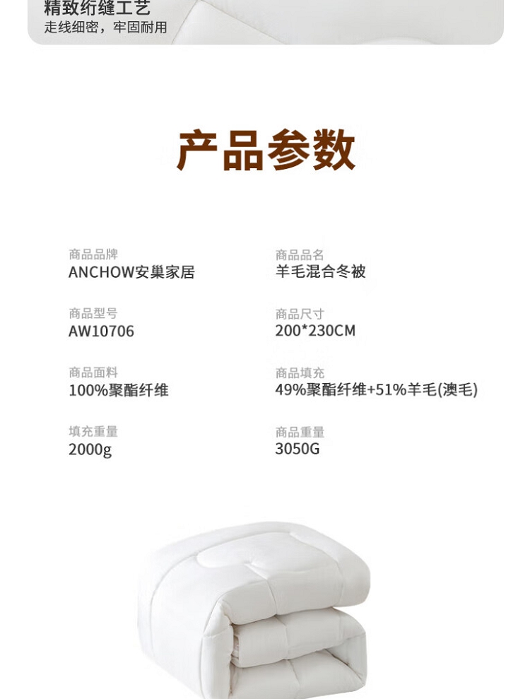 安巢ANCHOW 羊毛混合冬被 AW10706【LXGWZQ3.0】
