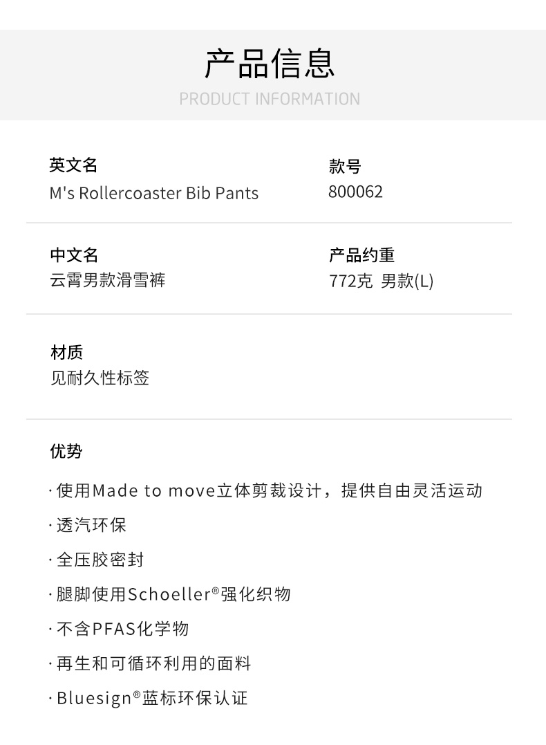 HOUDINI /胡丁尼 Rollercoaster Bib Pants 云霄飞跃男款户外滑雪裤 800062