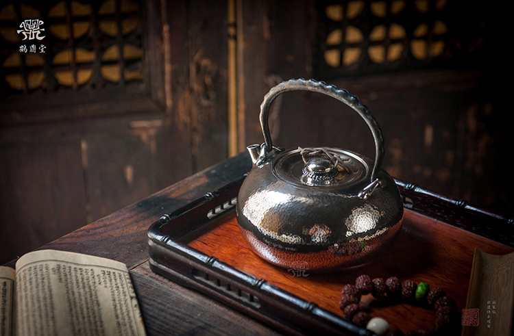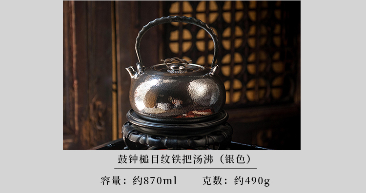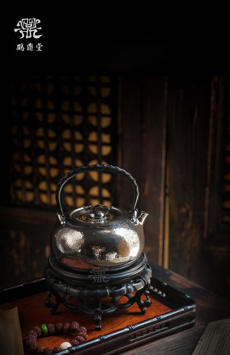 鹤鼎堂银壶闻天系列鼓钟槌目纹汤沸(银色)(缺货)