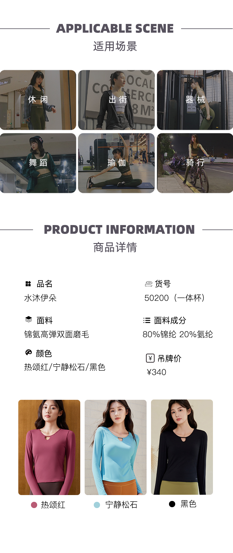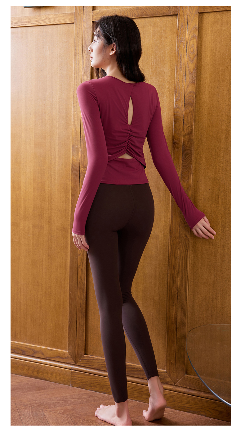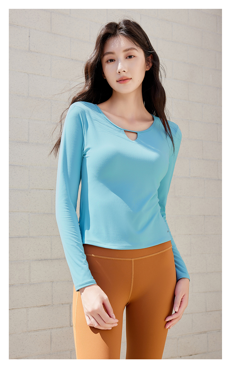 SMOEDOD/水沐伊朵瑜伽秋季健身衣圆领弹性镂空长袖修身型50200