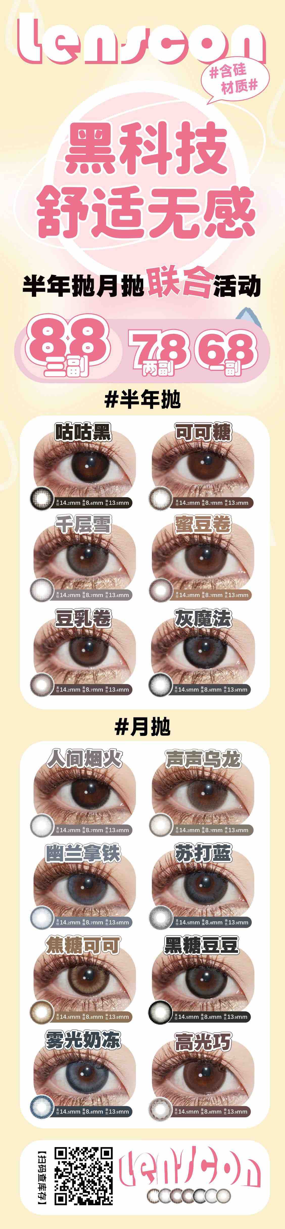 2024Lenscon半年抛&月抛 联名上线活动 ;超舒适无感含硅材质水润,活动58/副;78/2副 88/3副(下单备注款式度数)