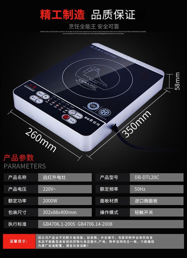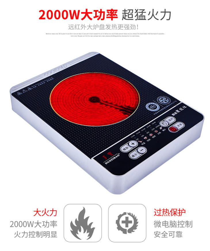 【电陶炉】多宝智能电陶炉 微电脑多功能聚能灶 家用远红外线电灶光波炉