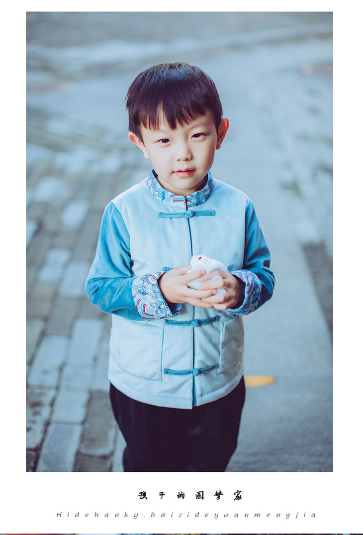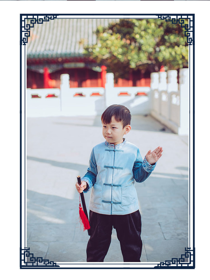 蓝色男童唐装上衣