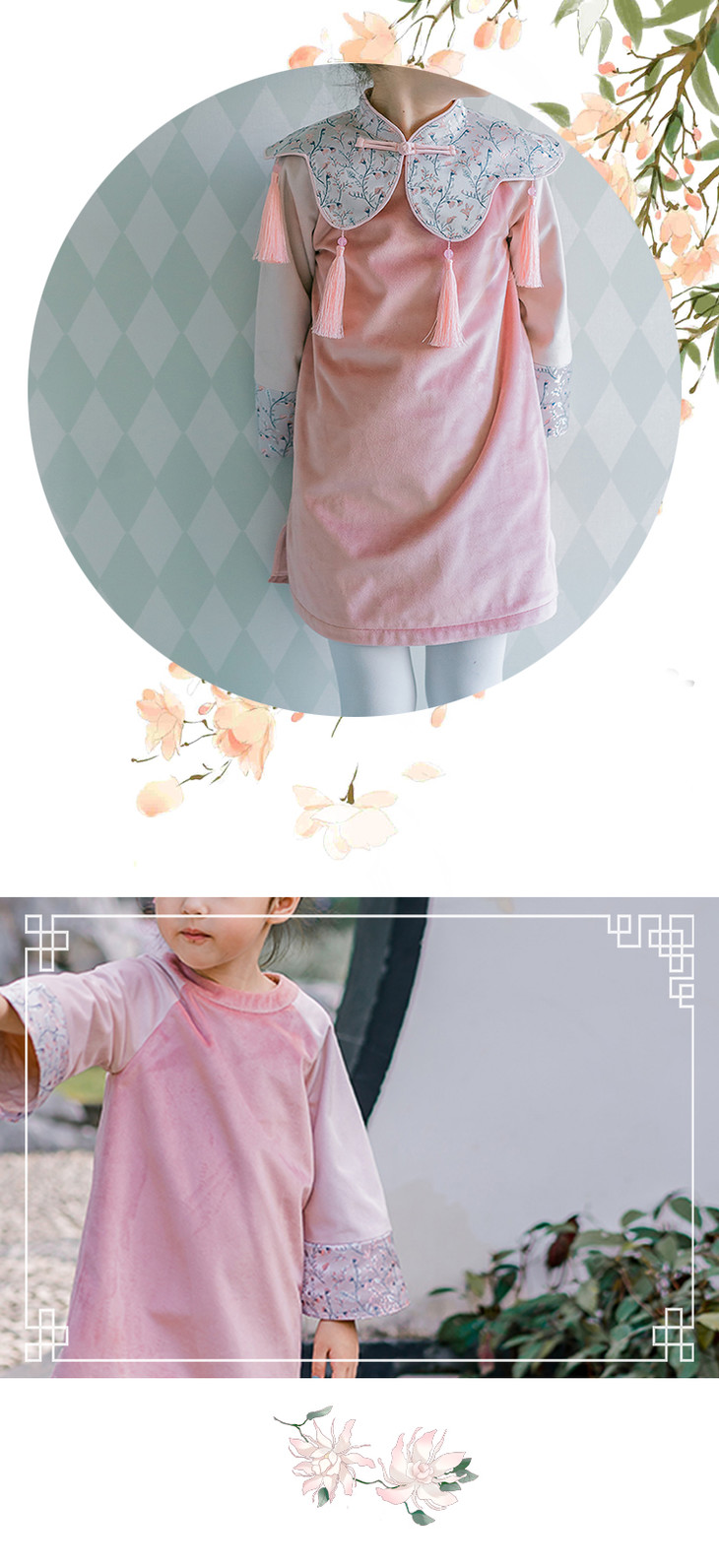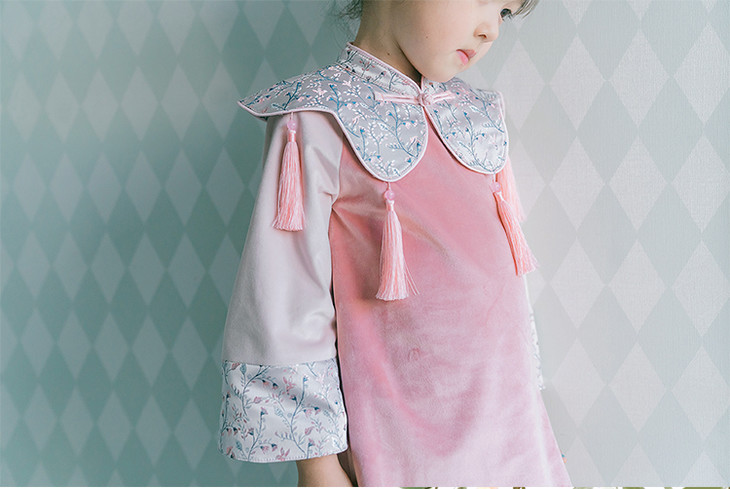 粉色丝绒女童旗袍