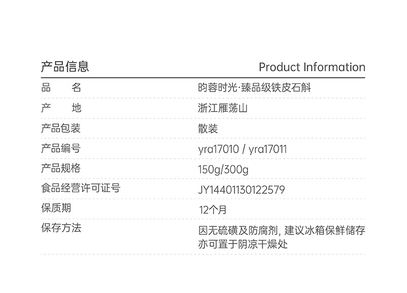 【昀蓉时光· 精选雁荡山臻选铁皮石斛· 熬夜加班人士必备·(150g/瓶)