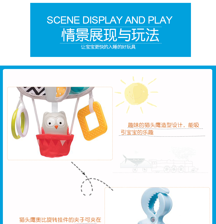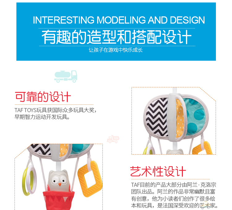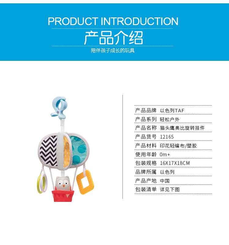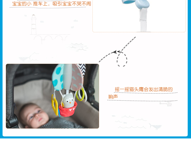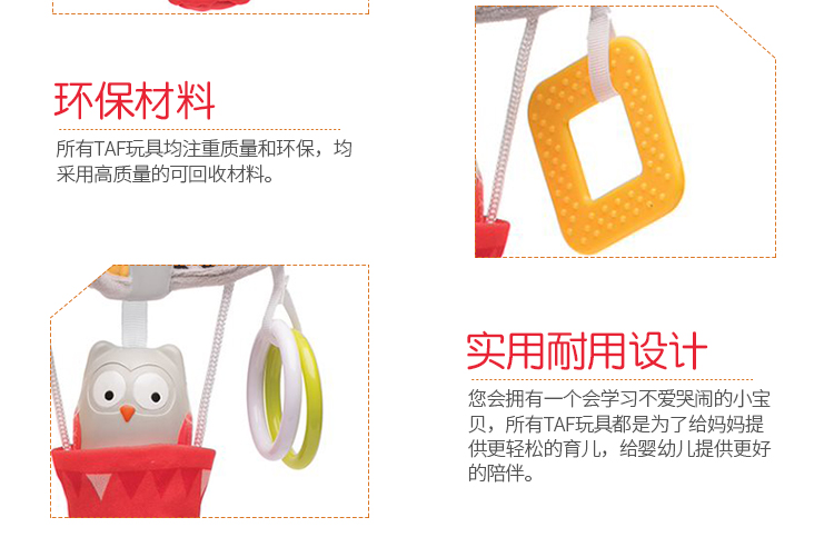 4楼Eubelle欧蓓 以色列TAF TOYS塔夫猫头鹰奥比旋转挂件带牙胶和拉环床车挂 吊牌价:158元 活动价:95元