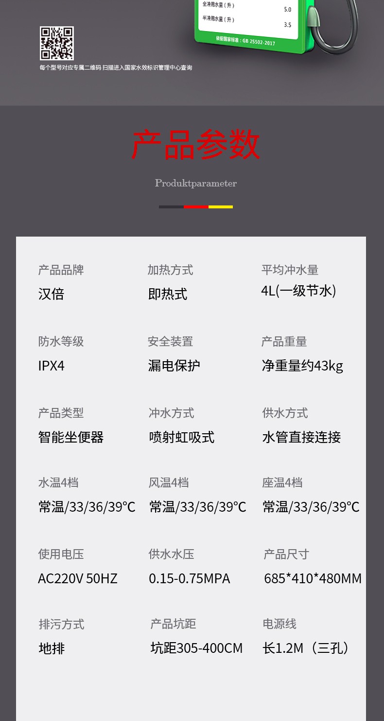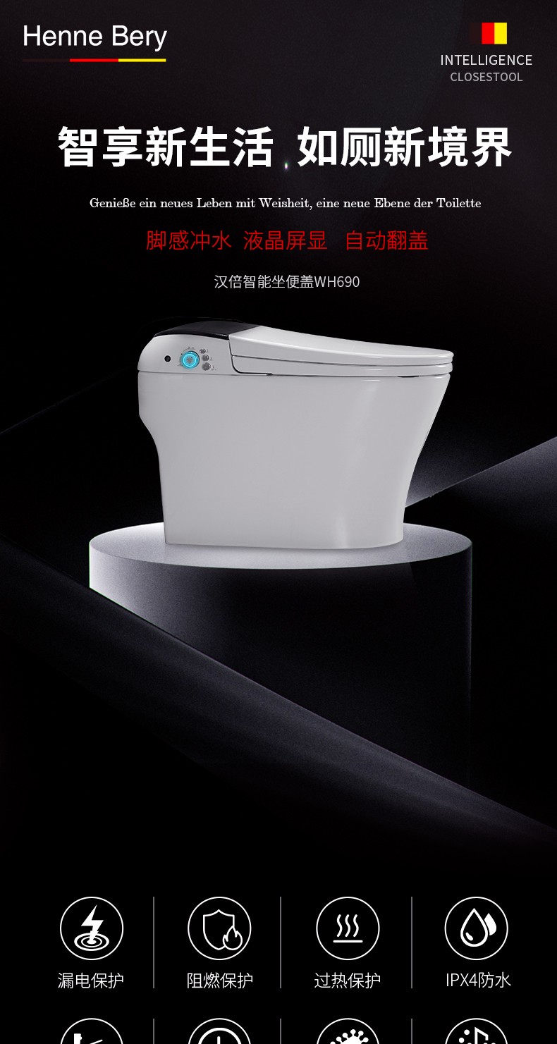 德国汉倍WH-690智能马桶除菌抗菌即热式感应冲水全自动一体式坐便器