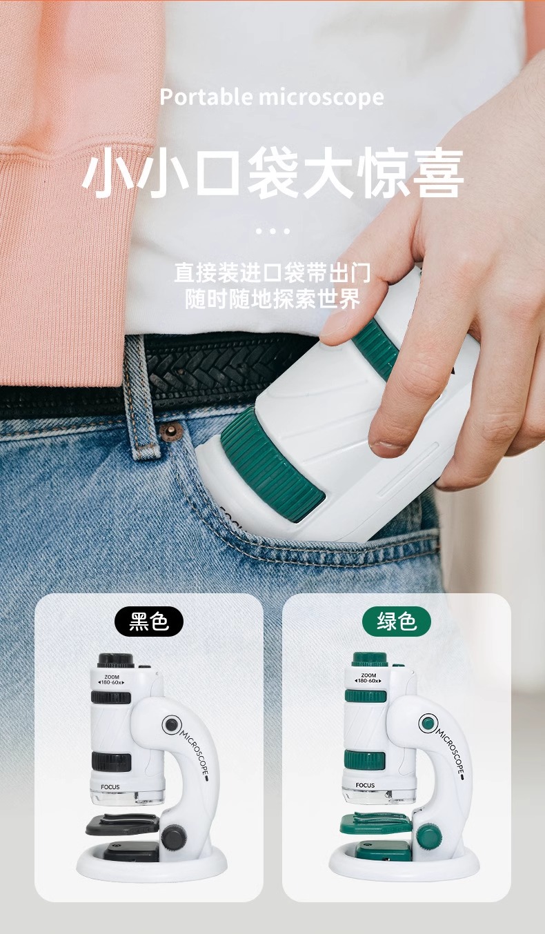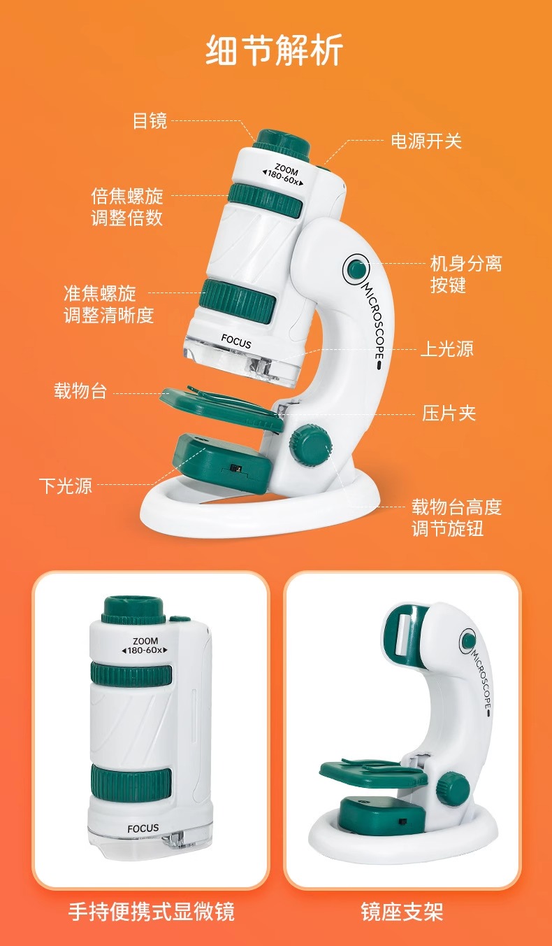 开学季福利!【专为儿童探索微观世界而生】学优马180X儿童显微镜便携式科学实验套装小学生男女孩手持玩具