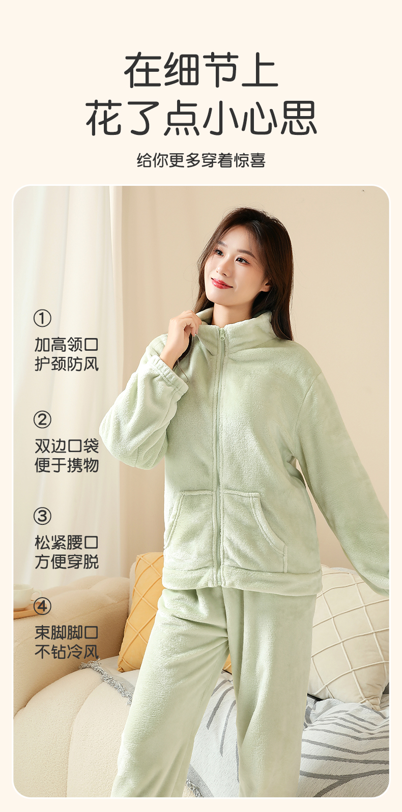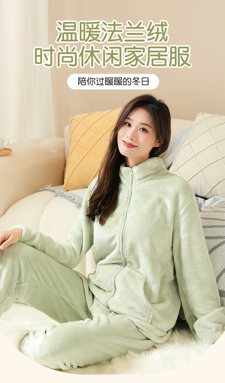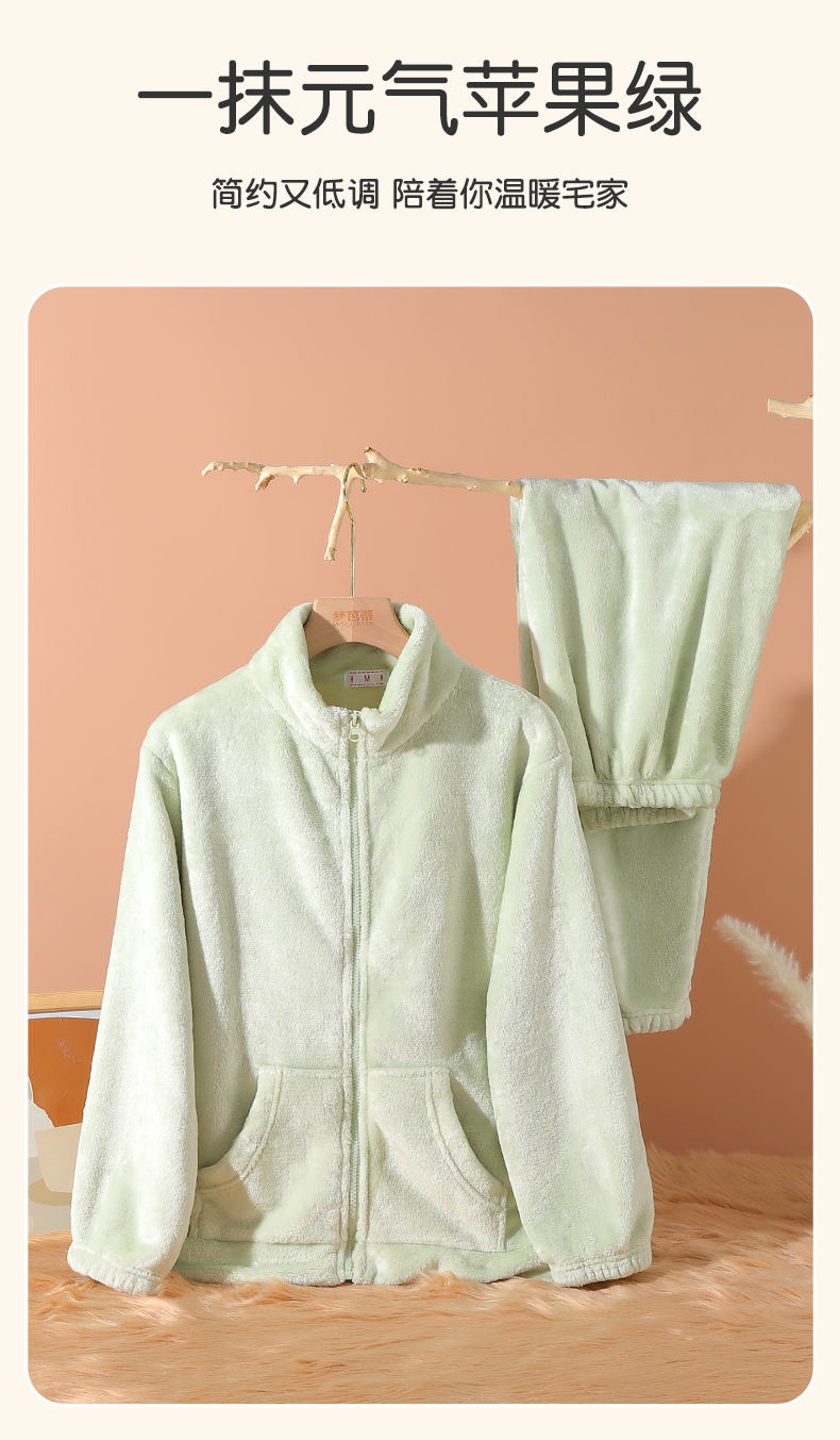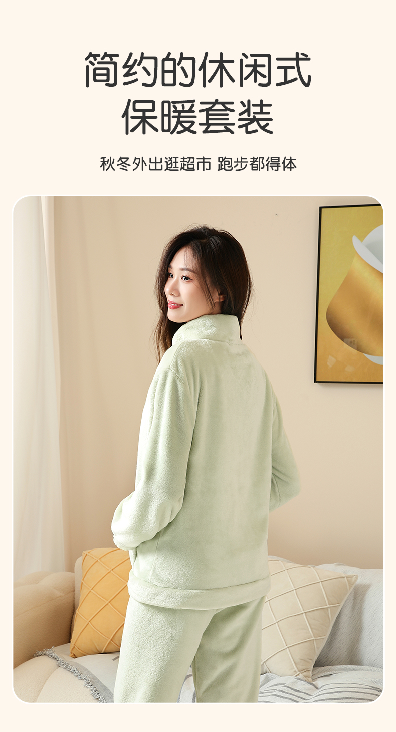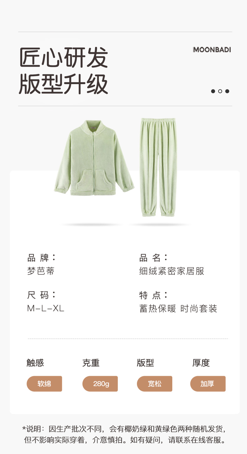 梦芭蒂睡衣套装长袖长裤经典圆领可爱加绒加厚女士家居服春秋2023细绒紧密家居服