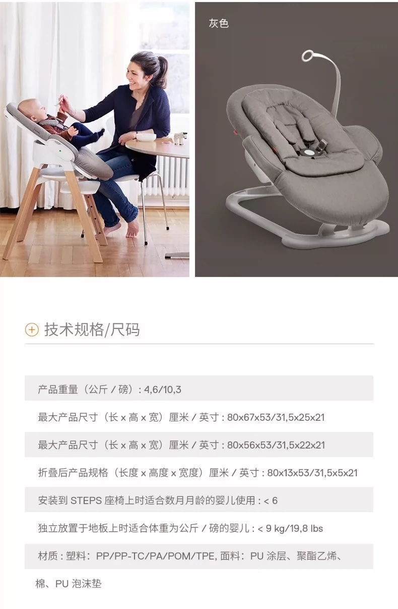 原装进口stokke steps 多功能新生婴儿儿童摇椅哄娃神器宝宝躺椅