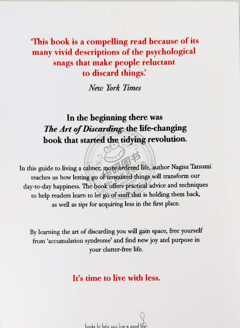 By learning the art of discarding you will gain space, free yourself from 'accumulation syndrome' and find new joy and purpose in your clutter-free life. It's time to live with less.