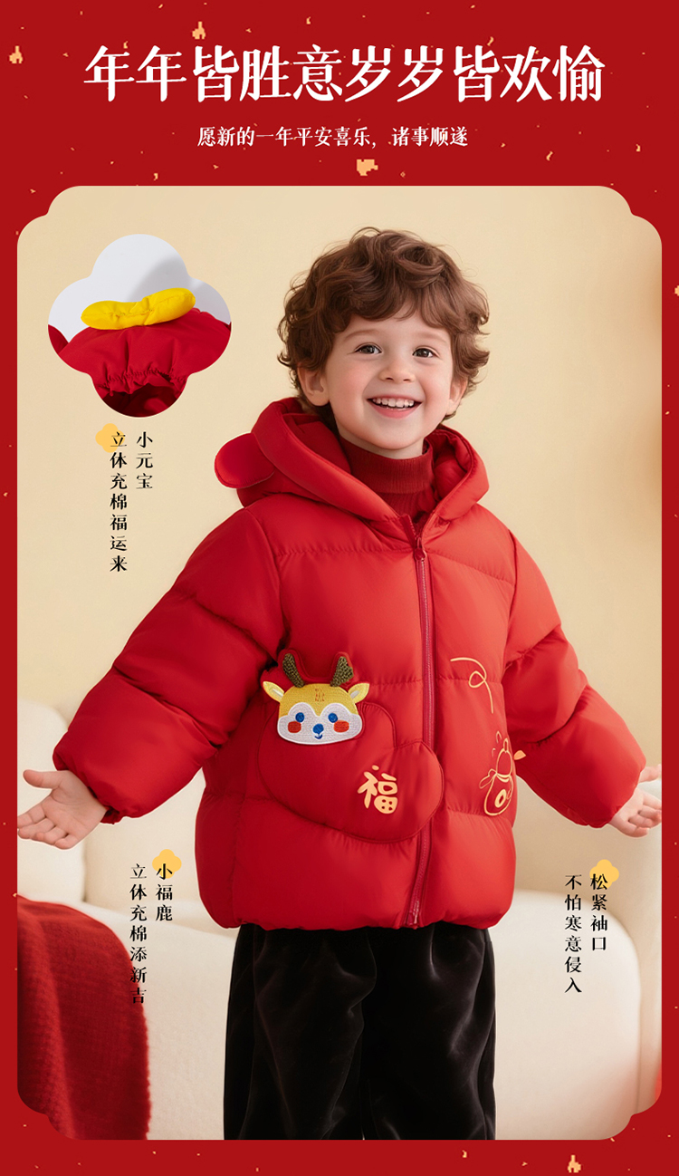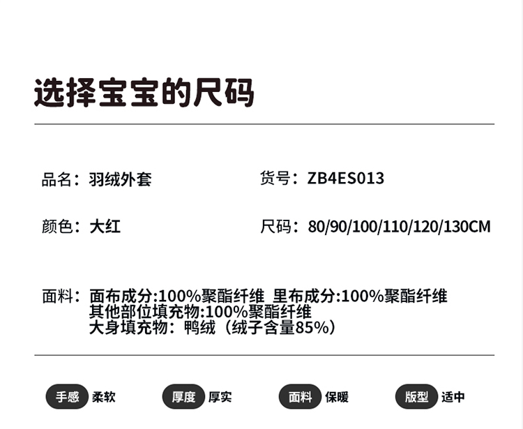 冬季童装儿童羽绒外套中小童宝宝防风上衣男女童保暖羽绒服ZB4ES013
