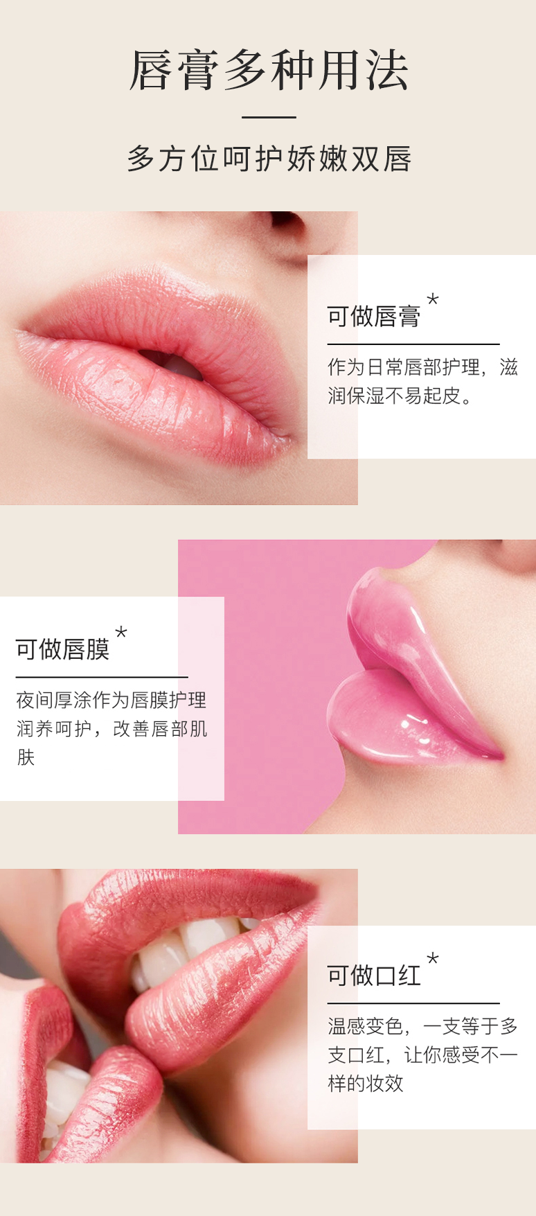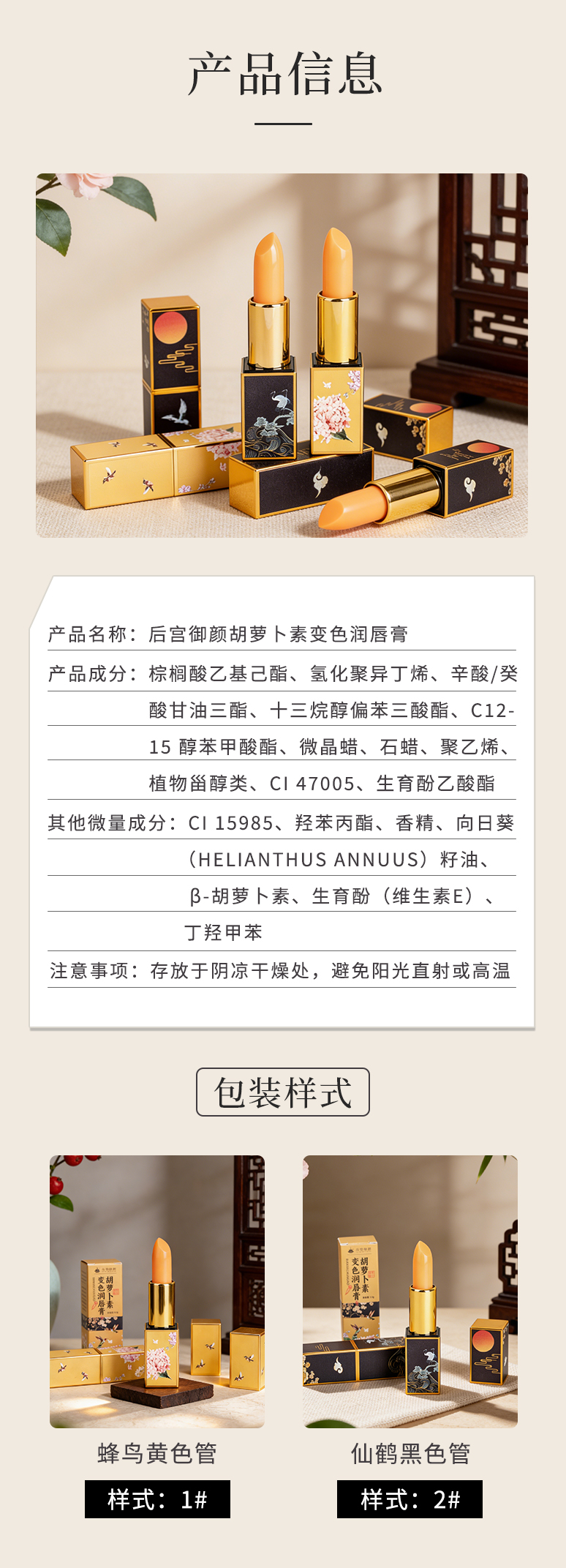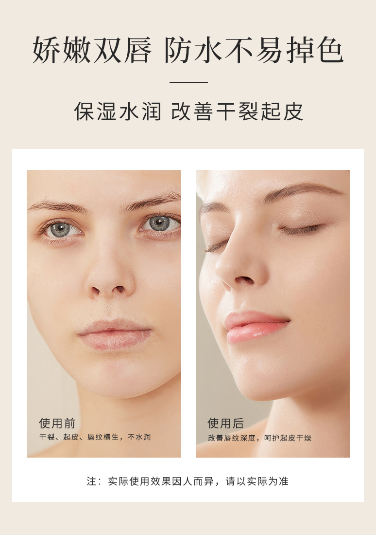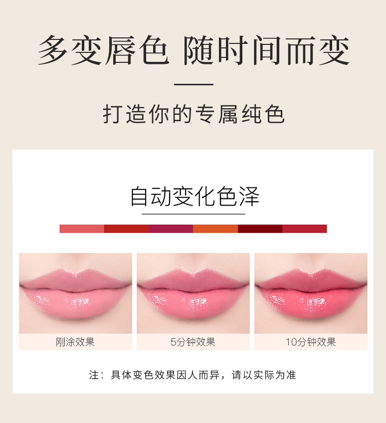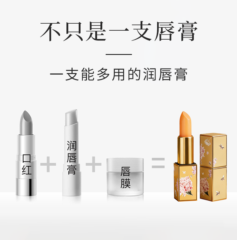 后宫御颜·胡萝卜素变色润唇膏 1支=口红+润唇膏+唇膜 持久保湿滋润、防干裂、淡化唇纹、防水不易脱色