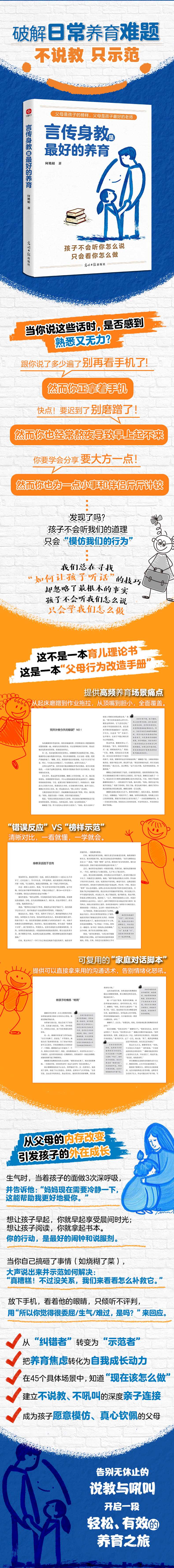 3、在忙碌的日常中,为孩子树立榜样。书中提供了具体可行的思路,让;言传身教融入生活的每一刻。