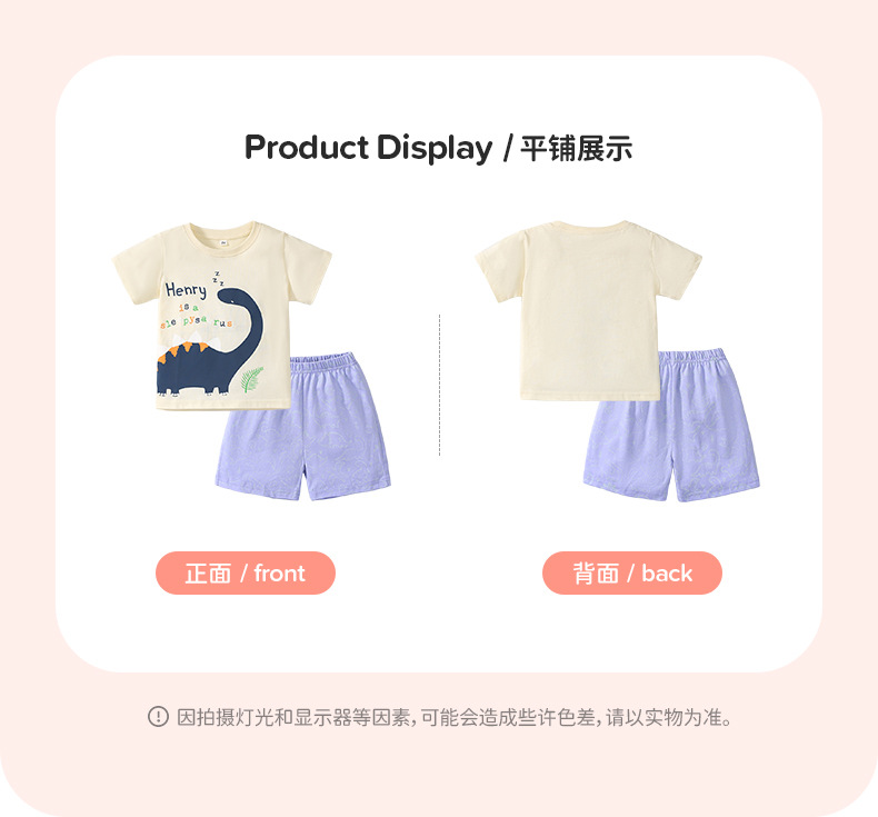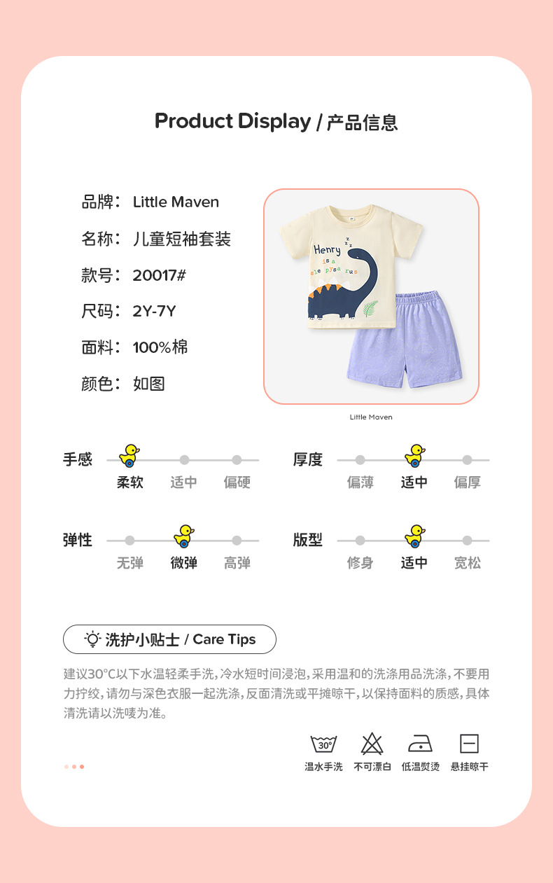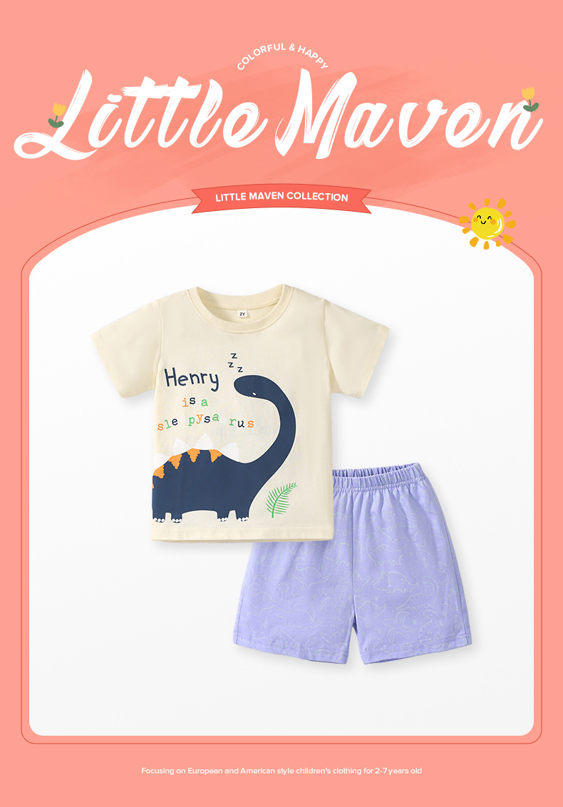 【小恐龙纯棉两件套】Little maven2024夏款儿童套装纯棉卡通上衣短裤两件套男女童套装