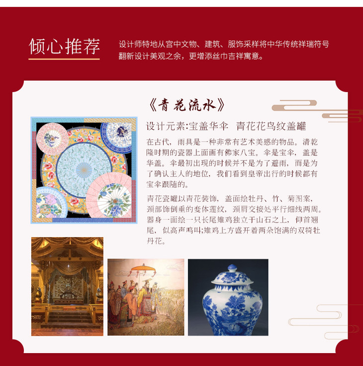 【宫里丝巾】 青花流水 真丝方巾