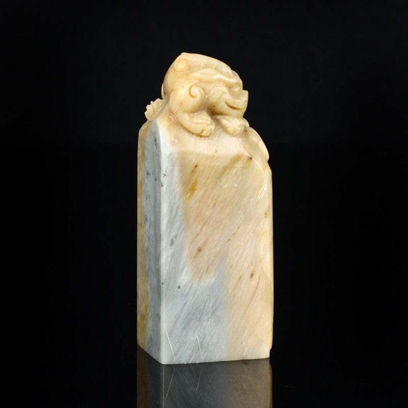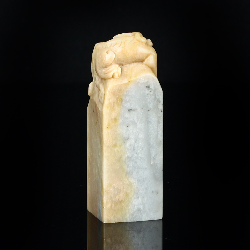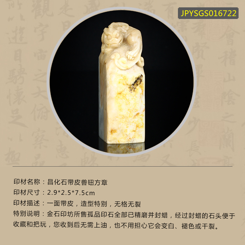 孤品016722-昌化石带皮兽钮方章-2.9*2.5*7.5cm