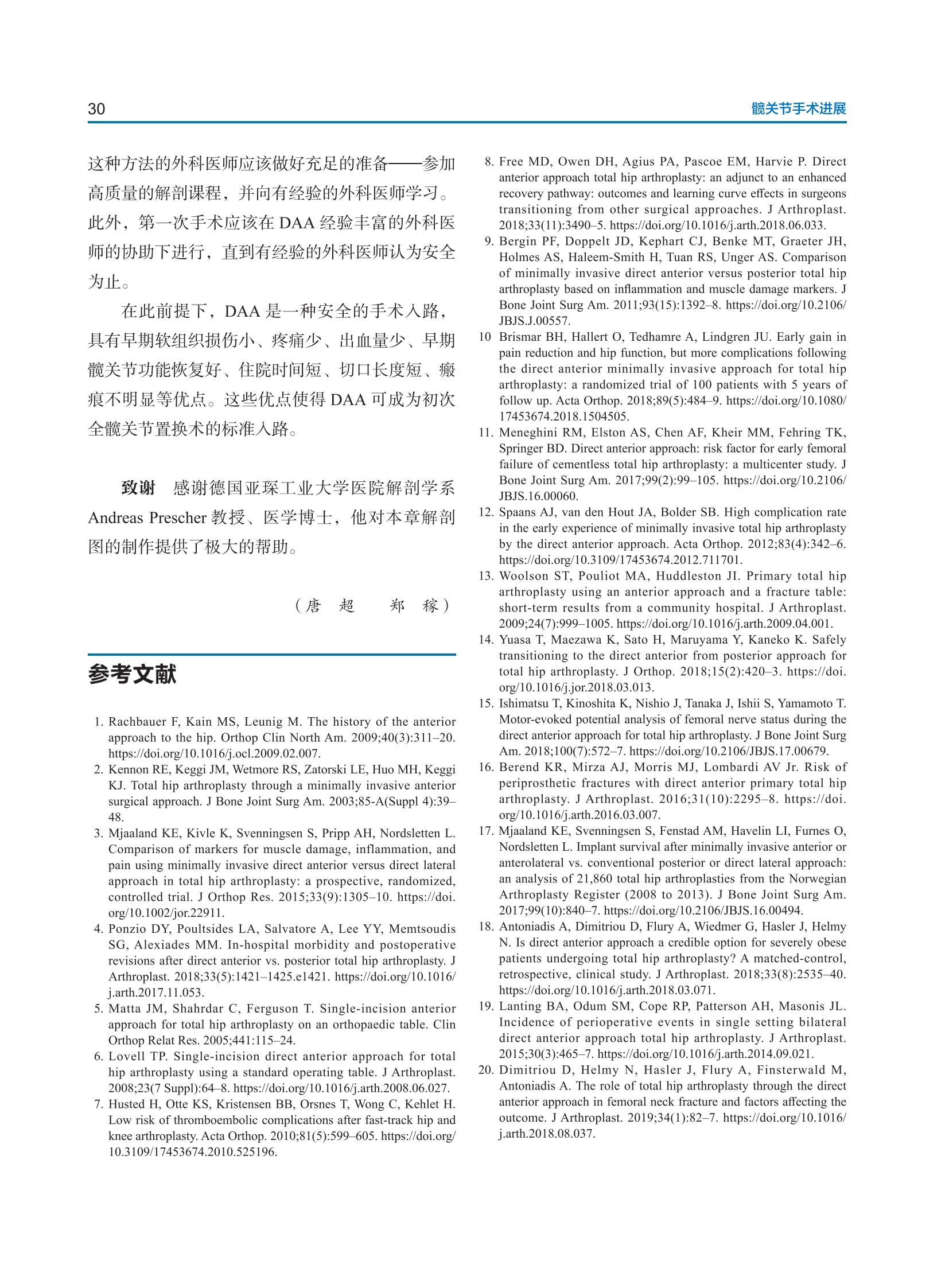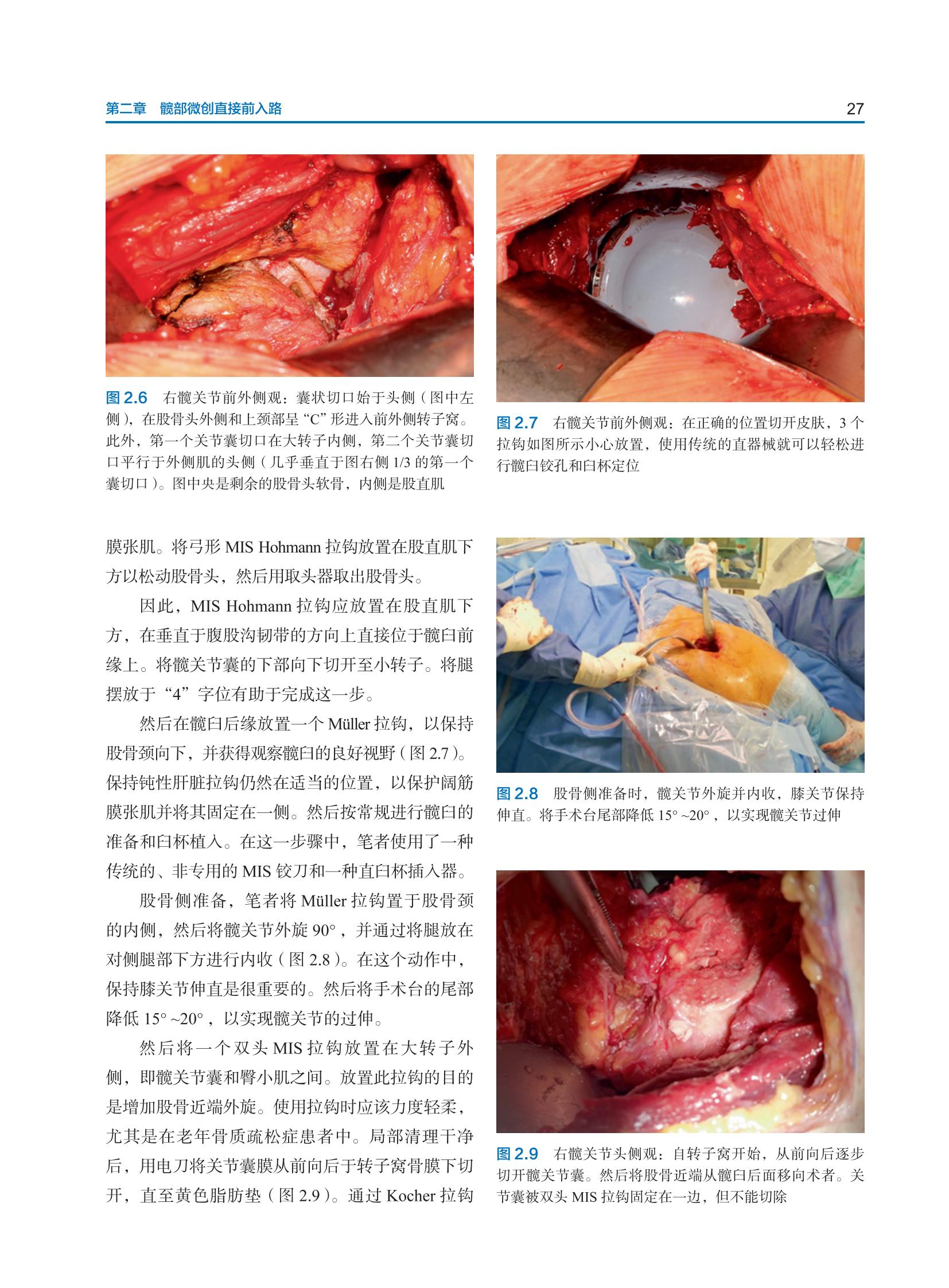 本书主要阐述了当前髋关节外科的新兴技术,为有志成为髋关节外科专家的骨外科医师提供必要的、最新的知识。开篇章节提供了髋关节外科解剖的简明概述,特别关注与外科技术相关的解剖细节。作者认为,简明的解剖学知识是手术成功的关键,也是推动手术技术进步、实施新手术方法的关键。本书介绍了广受欢迎的髋关节微创直接前入路和该入路的变式。随后的章节介绍了髋关节发育障碍(包括发育不良和股骨髋臼撞击综合征)的手术方法。股骨头缺血性坏死是一种经常被忽视的疾病,其会损伤年轻患者的髋关节。因此,本书有一章内容专门介绍有关这种疾病最先进的诊断和治疗方法。本书最后对髋关节置换术的最新技术和假体进行了深入的讨论。